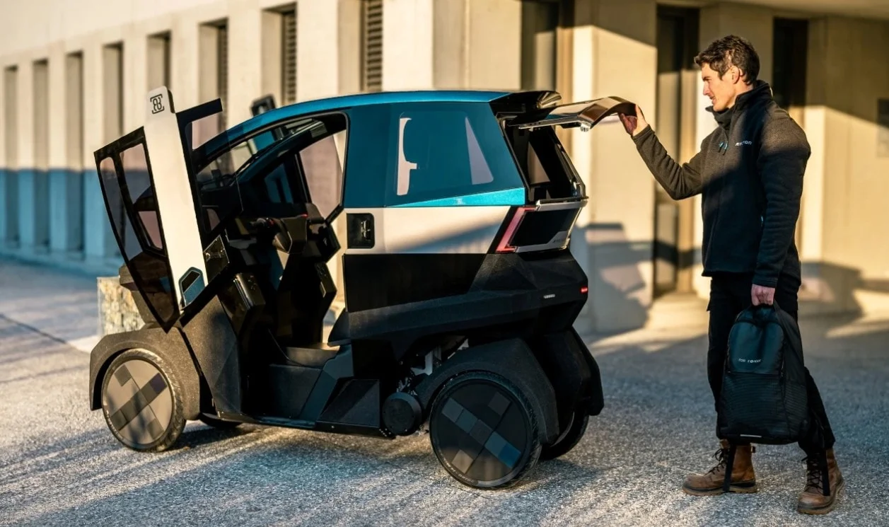 To co widzimy, to elektryczny czterokołowiec mający łączyć w sobie najlepsze cechy dwóch światów - ma być wąski i zwinny jak motocykl, oraz bezpieczny i komfortowy jak samochód. Wszystko to się mieści w nadwoziu (?) o długości 235 cm i maksymalnej szerokości 79 cm, oraz masie 250 kg w możliwie najcięższej konfiguracji. Może się wychylać o kąt 35 st., dzięki specjalnemu mechanizmowi, co zwiększa jego zwinność w ciasnych uliczkach.