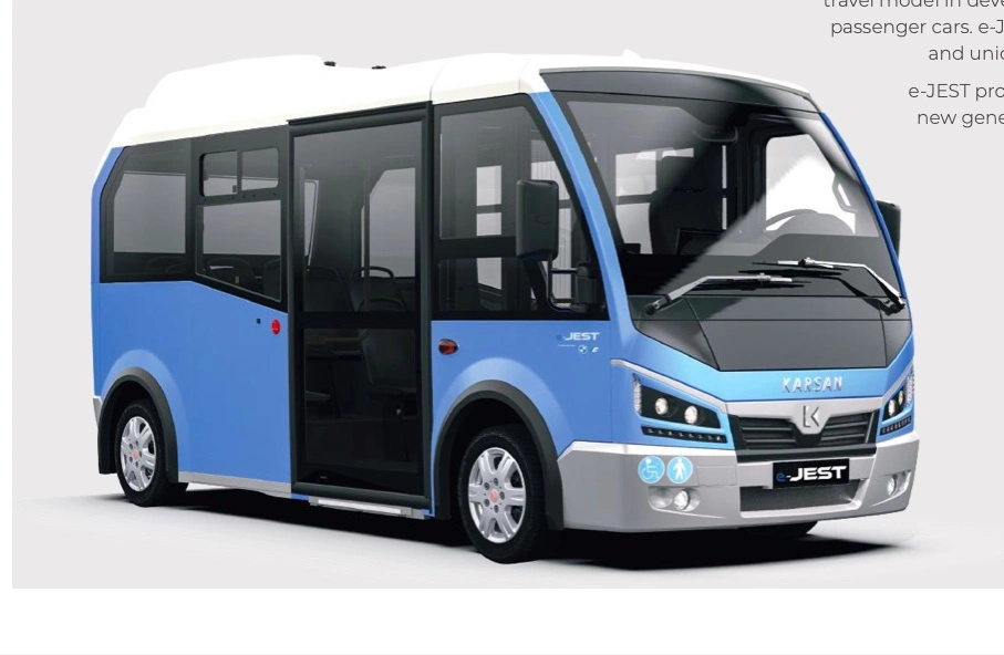To turecki Karsan e-JEST. Tak się nazywa i oferuje od 16 do 19 miejsc z homologacją M2. Karsany JEST już jeżdżą od lat po podmiejskich liniach wokół Warszawy, widuję je m.in. w Grodzisku Mazowieckim. Elektryczny JEST rozwija 70 km/h i może przejechać ok. 200 km na jednym ładowaniu. Wygląda ślicznie:
