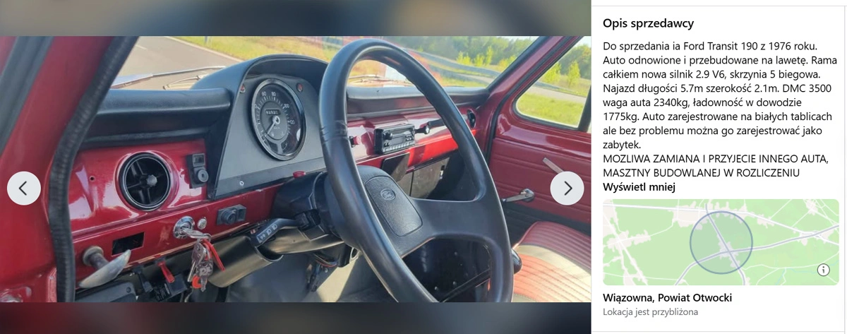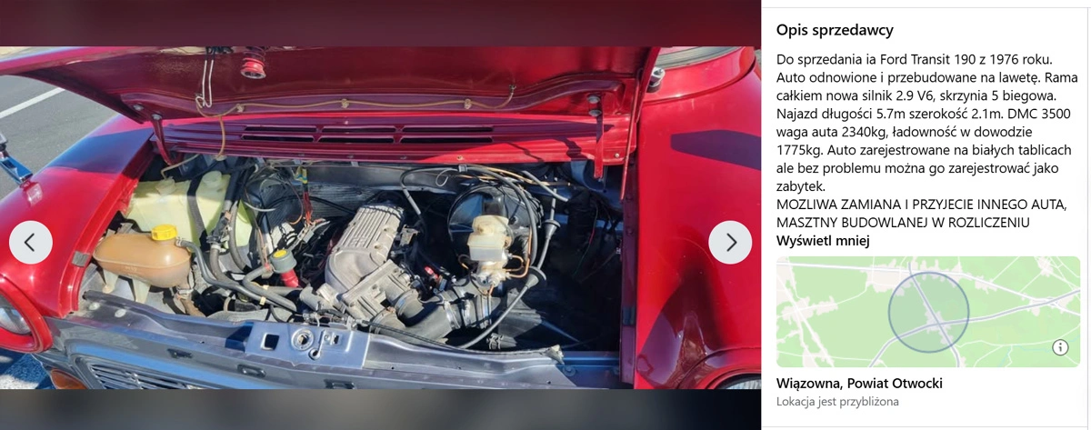 Według słów sprzedającego, najazd ma długość dokładnie 5,7-metra, zatem wjedzie tam nawet GAZ-13 Czajka. A nie, chwila… Ładowność Transita to 1775 kg, zatem z tą Czajką to może niekoniecznie. Dobra, nie ważne. Jest dużo miejsca, a co z nim zrobicie, to już Wasza sprawa.