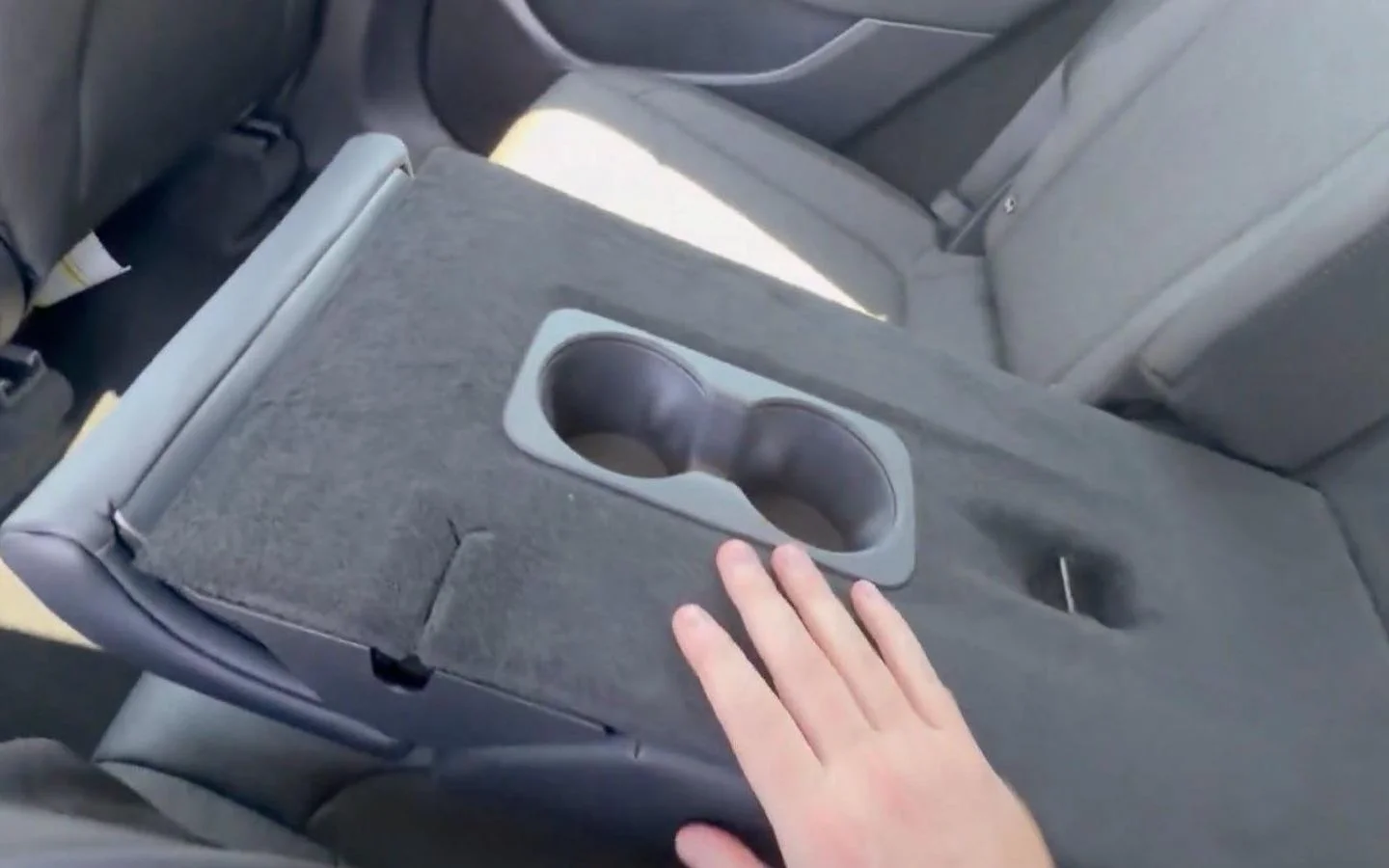 Miało być tanio i jest, ale czy to oznacza że ma być nonsensownie? Kładziony fragment oparcia tylnej kanapy z uchwytami na kubki nie pozostaje po opuszczeniu w pozycji poziomej, więc wsadzone weń pojemniki będą pochylone. To trochę morduje ideę uchwytu, dzięki któremu zawartość kubka się nie wyleje, chyba że będziemy wozić tam tylko kubki napełnione do połowy.