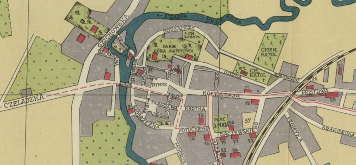 Tyle, że kiedyś wcale tak nie było, bo w miejscu tytułowego skrzyżowania znajdowały się historyczne zabudowania. Sama Nerka jest elementem większego organizmu, złożonego z dzisiejszej drogi krajowej nr 86 i drogi wojewódzkiej nr 910, dlatego oprócz samego skrzyżowania powstały też szerokie trasy przelotowe. To właśnie one zrobiły największe spustoszenie, dokonując gwałtu na średniowiecznym układzie urbanistycznym miasta.