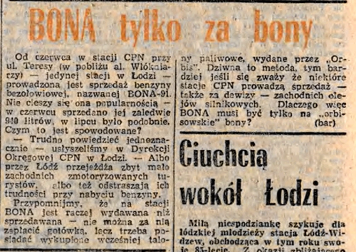 Benzyna Bona 91 była odpowiednikiem znanej na zachodzie benzyny bezołowiowej typu Normal