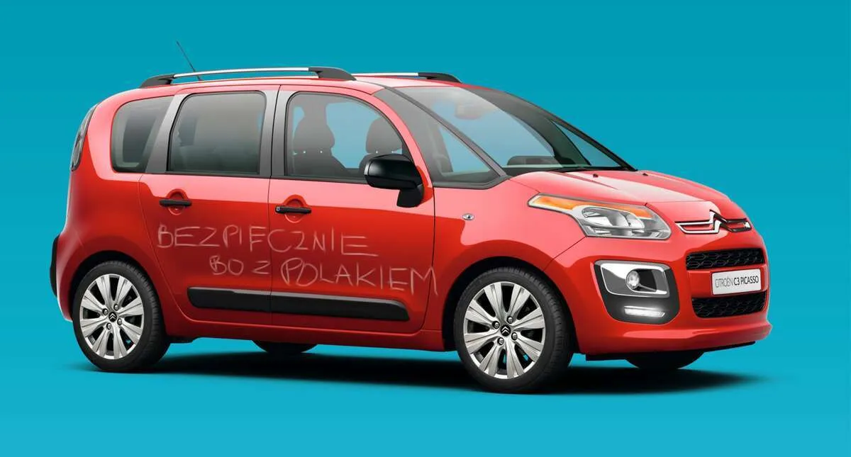 Ten Citroen C3 Picasso nie powinien poruszać się po ulicach w takiej formie. Może być w idealnym stanie mechanicznym i blacharskim, ale pojazd poruszający się po drodze publicznej nie może mieć elementów odstających poza obrys pojazdu. Polskość nie zdejmie z niego możliwych konsekwencji. Te mogą nadejść ze strony policji, bo urząd wydający licencję, nie zajmuje się stanem technicznym pojazdu.