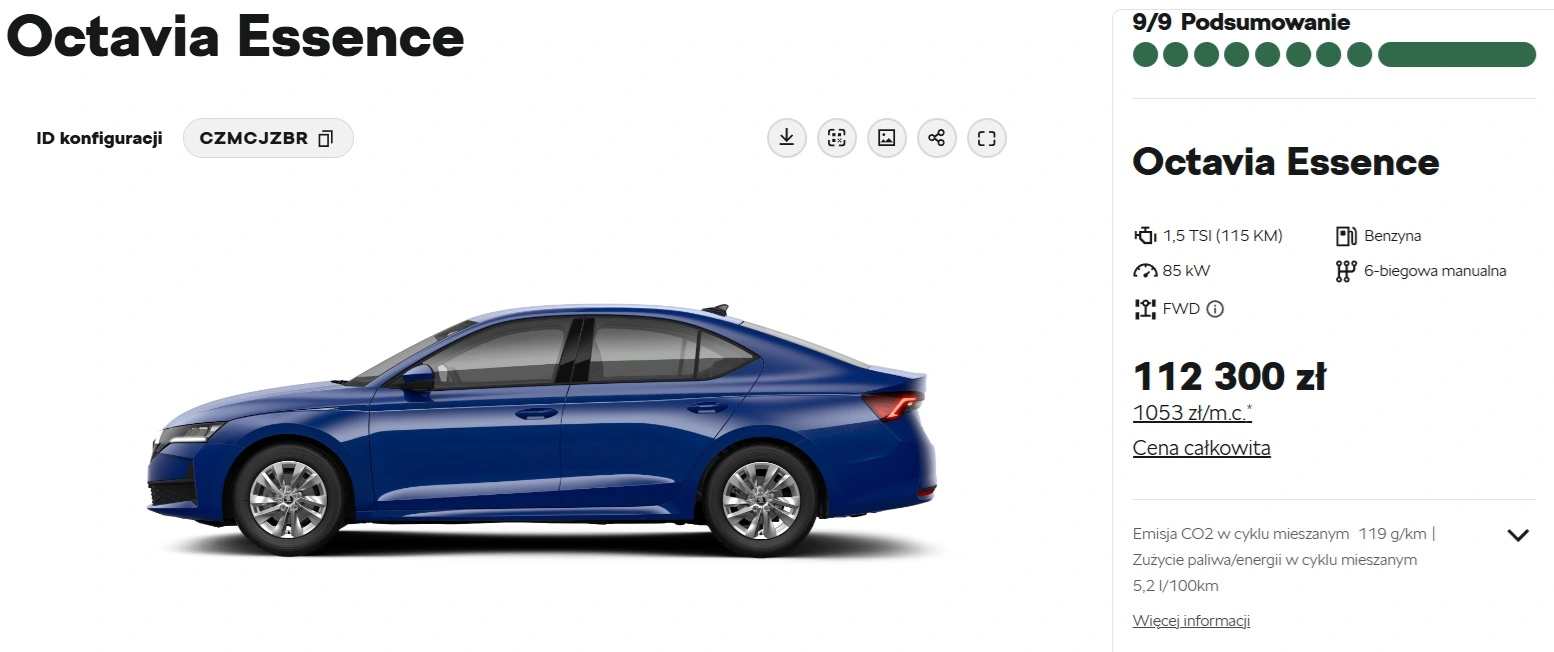 Za odrobinę więcej da się nawet znaleźć Octavię. W absolutnie podstawowej wersji wyposażenia Essence i ze słabawym silnikiem 1.5 TSI o mocy 115 KM dostaniemy jednak popularny i sprawdzony samochód, za jedynie 2300 zł więcej niż rower. W przeciwieństwie do Bugatti, w Skodzie znajdziemy m.in. reflektory w technologii LED, podgrzewane lusterka, czy automatyczną klimatyzację.