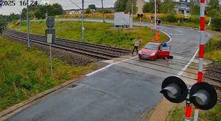 Niewyobrażalny pech. Koło odpadło od Opla na przejeździe kolejowym