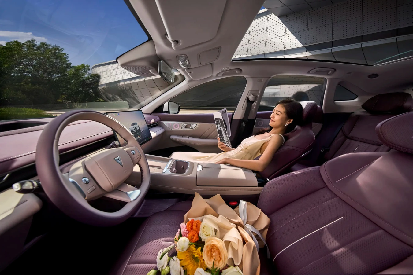 Kolejny ekran znalazł się z tyłu i ma przekątną 4,2 cala, a także ma możliwość rozszerzenia o iPada. Wyposażenie wnętrza uzupełniają 20-głośnikowy system audio Dolby, oświetlenie ambientowe, a także dwuwarstwowe, dźwiękoszczelne szyby z przodu.