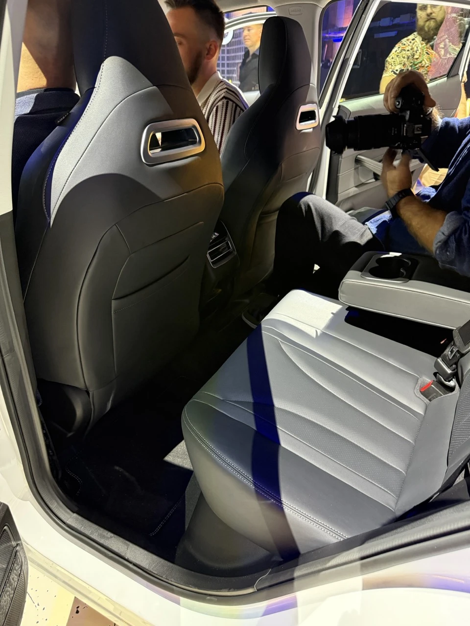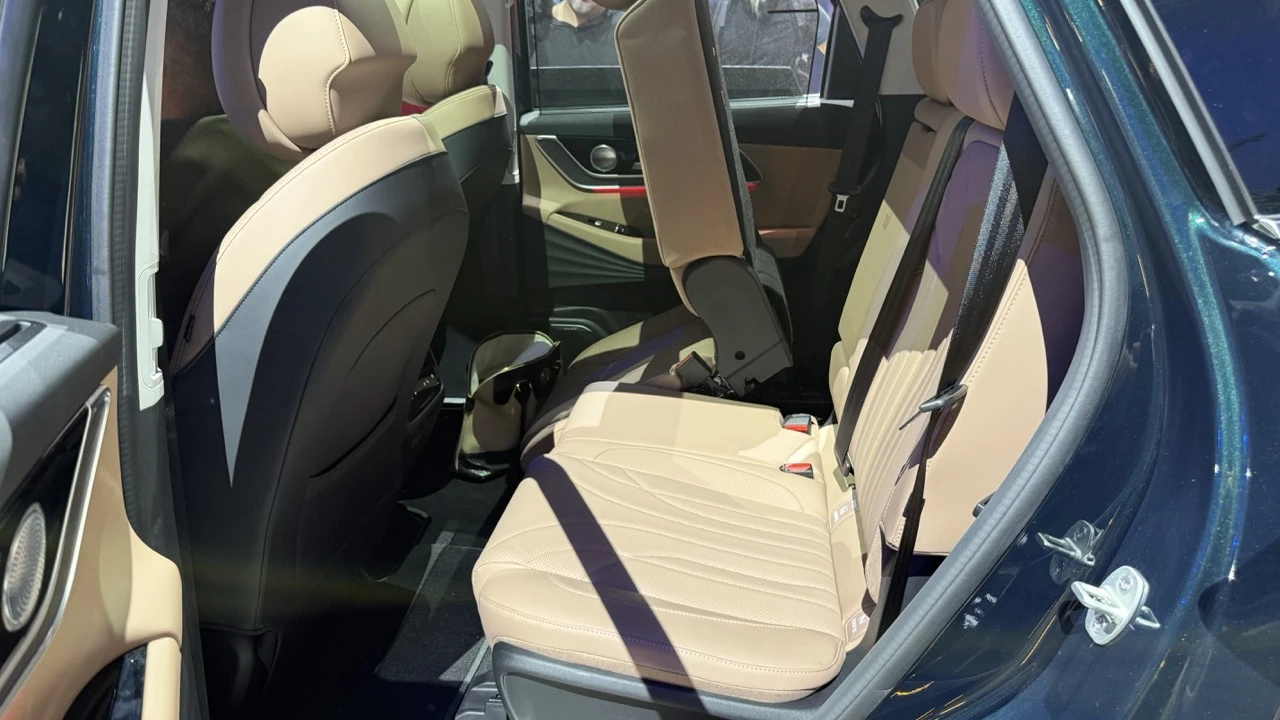 Rozumiem, że auto stara się ułatwić wejście do trzeciego rzędu - to nie jest łatwe i wymaga nieco akrobatycznych zdolności. Odsuwa więc kawałek tylnej kanapy, a by i to odbyło się łatwiej, Tiggo 9 rusza wtedy przedni fotel pasażera, stawiając oparcie i przesuwając całość do przodu. Podczas pokazu robiło to również wtedy, gdy ktoś tam siedział. Pasażerowie byli zdziwieni, a bycie ściśniętym przez fotel nie należy z pewnością do przyjemnych.