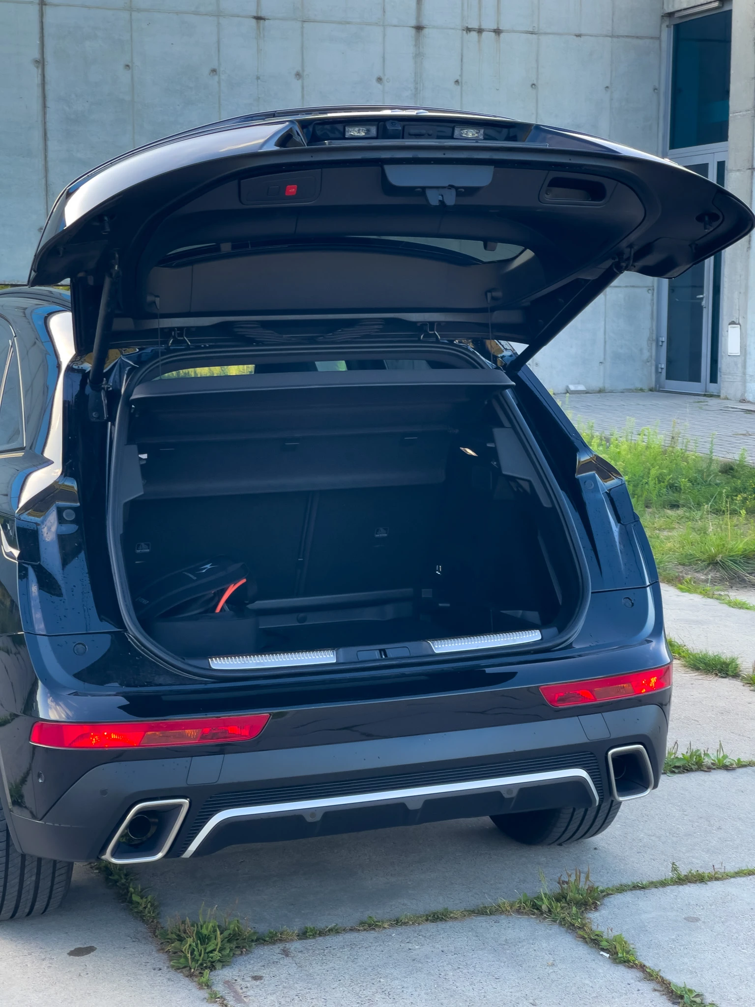 DS 7 ma długość 4593 mm, szerokość 1906 mm, wysokość 1637 mm, a rozstaw osi to przyzwoite 2738 mm. Te wartości przekładają się na SUV-a, co do którego nie miałem zastrzeżeń w zakresie miejsca dla podróżujących. Pojemność bagażnika to 555 l, a po złożeniu siedzeń otrzymujemy 1752 l.