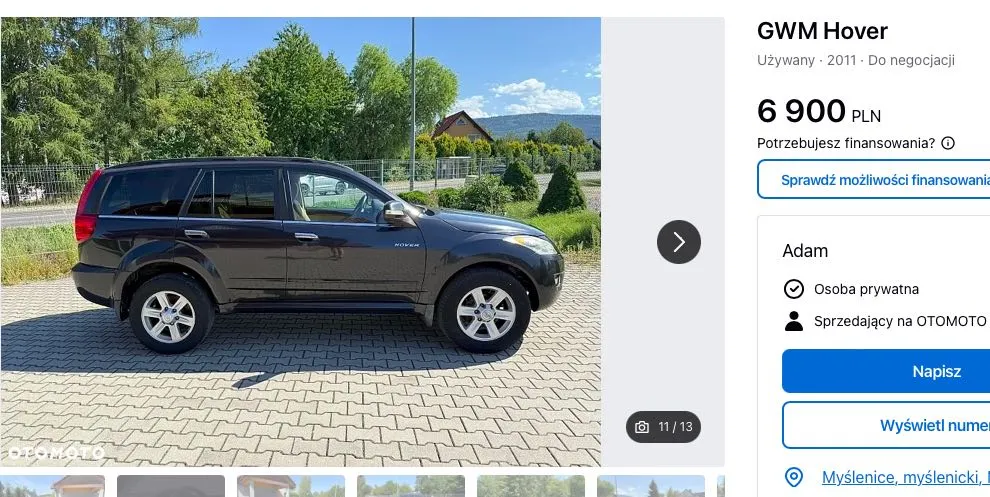 Najtańsza oferta w tym zestawieniu - SUV z 2011 r. za jedyne 6900 zł. Marka Great Wall Motors niespecjalnie pcha się do Europy. Pod nazwą Haval miewa się doskonale w Rosji, gdzie ich modele typu Jolion okupują pierwszą piątkę listy bestsellerów. Model Hover był pierwszym dużym sukcesem komercyjnym Great Wall. Te samochody były szeroko eksportowane do licznych krajów, od Afryki przez Rosję aż po Amerykę Południową. Z daleka można go pomylić przez chwilę z Mitsubishi Pajero, choć bardziej z rzadko spotykanym w Europie Isuzu Axiom. Pod maską ma benzynowy silnik 2.4 z Mitsubishi połączony z manualną skrzynią biegów. W opisie napisano, że nie działają wskaźniki, więc auto sprzedający wystawia jako uszkodzone.