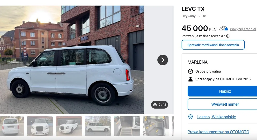 Geely chciało stworzyć idealną taksówkę. Wygląda jak londyński „black cab” wywodzący się ze starych Austinów serii TX, ale wyposażono ją w układ napędowy typu hybryda plug-in pochodzący z Volvo (które też przecież należy do Geely). Początki były obiecujące, kilka tych LEVC-ów nawet jeździło po Polsce. Szybko jednak okazało się, że to nie ma większego sensu, bo Toyoty są o wiele tańsze w eksploatacji, a hybryda plug-in jako taksówka nie sprawdza się zbyt dobrze, bo na prądzie jedziesz tylko pierwszy kurs, resztę już na benzynie. Nic dziwnego, że teraz kosztuje tylko 45 000 zł – nie wiadomo co z tym robić, ani to minivan, ani sedan, wiezie kierowcę i sześcioro pasażerów, ale w dość spartańskich warunkach. Cel ćwiczenia szczytny, wykonanie średnie.