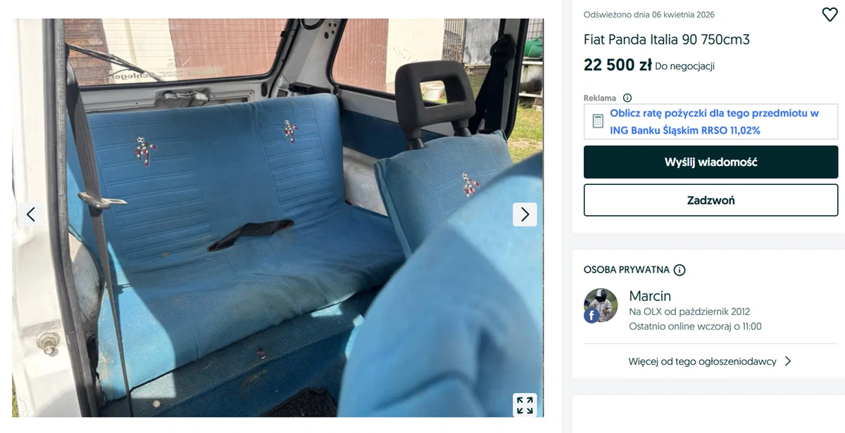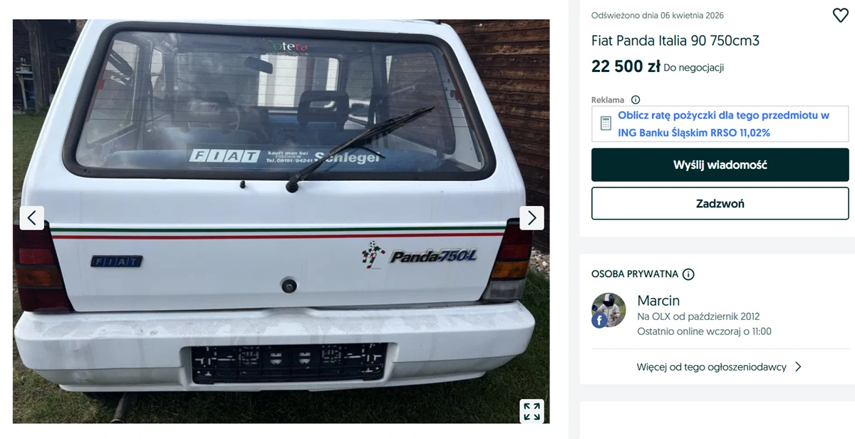Według rejestru, w Polsce znajduje się jedna sztuka Pandy Italia 90. Sprzedawany egzemplarz byłby więc drugim. Pochodzenie samochodu nie zostało ujawnione w ogłoszeniu, niemniej wszystko wskazuje na to, że został sprowadzony z Niemiec.