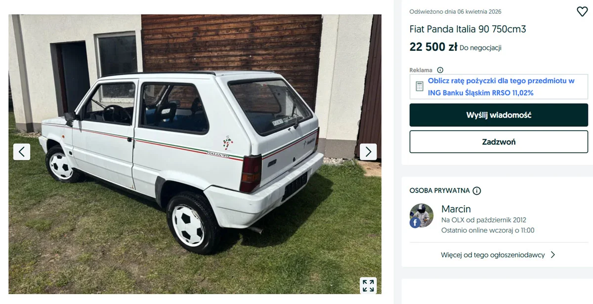 Ceny nie komentuję, bo tę każdy musi przekalkulować sobie subiektywnie. Dla mnie Fiat Panda Italia 90 to po prostu ciekawy samochód, który stanowi ciekawy pomnik historii, a dodatkowo łączy w sobie dwie moje największe pasje: motoryzację i piłkę nożną.