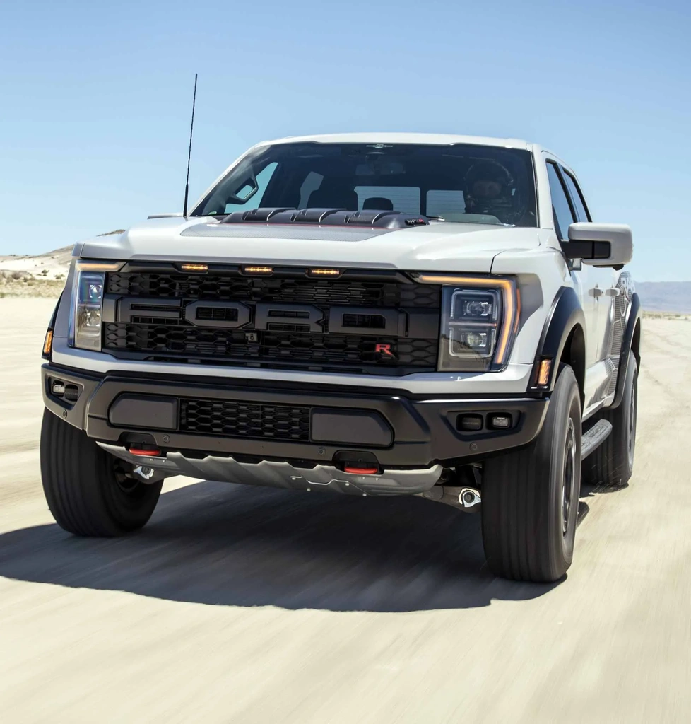 Najmocniejsza wersja najpopularniejszego auta w Stanach właśnie zadebiutowała. I dostała V8 – to samo, które pracuje w Mustangu GT500. A to oznacza 5,2 litra pojemności, ale inne wyniki, jeśli chodzi o moc i moment obrotowy. Mocy może i jest mniej, ale momentu więcej i jest dostępny wcześniej i w szerszym zakresie obrotów. A konkretnie – w GT500 jest 760 KM i 847 Nm dostępnych od 5 000 obr./min, a w Raptorze R niutów jest 867 i są dostępne w pełni już przy 4 250 obr./min. To niestety oznacza, że w papierowym pojedynku Raptor o włos przegrywa z konkurencyjnym TRX-em, ale Ford zdaje się tym nie przejmować.