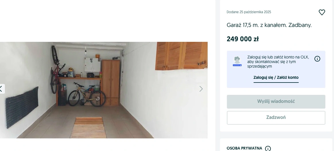 W 2010 r. kupiłem swój pierwszy garaż. Znajdował się w długim kompleksie garaży w Warszawie i służył mi znakomicie przez 13 lat. Trzymałem tam różne samochody, ale też wykonywałem proste prace mechaniczne, czasem nawet ładowałem auto elektryczne z gniazdka – bo garaż ten wyposażony był w prąd. W 2023 r. sprzedałem go za nieco ponad dwukrotność ceny początkowej, co było kwotą stosunkowo niewielką jak za taką lokalizację, ale kupił go znajomy, więc nie byłem niezadowolony. Już wtedy czytywałem w internecie o tym, że garaże z PRL to nowy hit inwestycyjny, bo tanie mieszkania się skończyły. Chyba jednak te inwestycje poszły ludziom średnio. A oto i ogłoszenie: