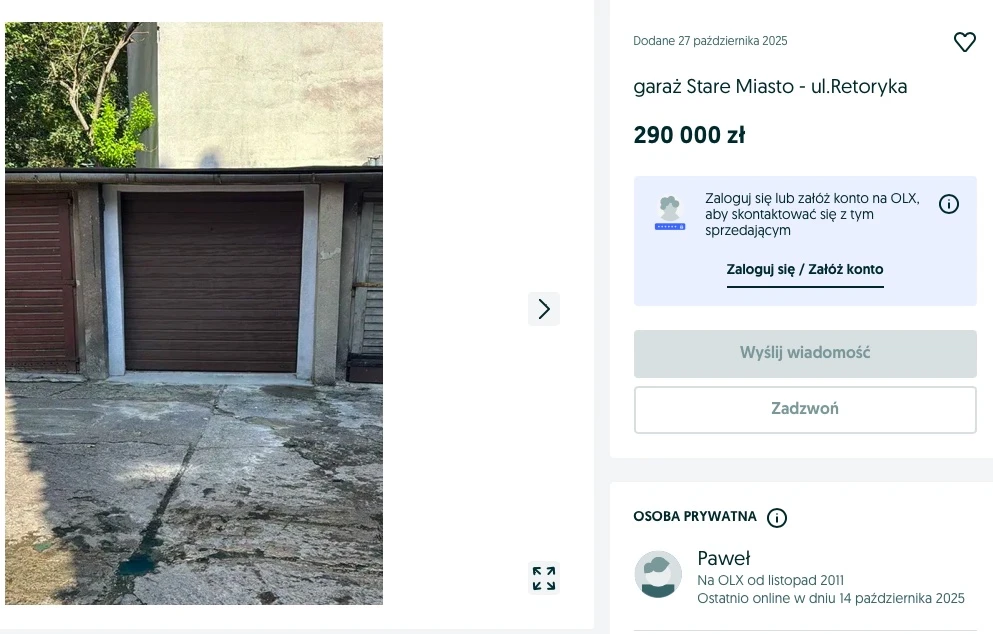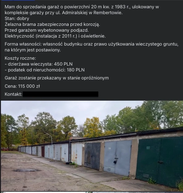 Już prawie dwa tysiące reakcji „haha” zebrał post o sprzedaży garażu z 1983 r. na warszawskim Rembertowie. Boks znajdujący się w ciągu garaży został wyceniony na 115 tys. zł.