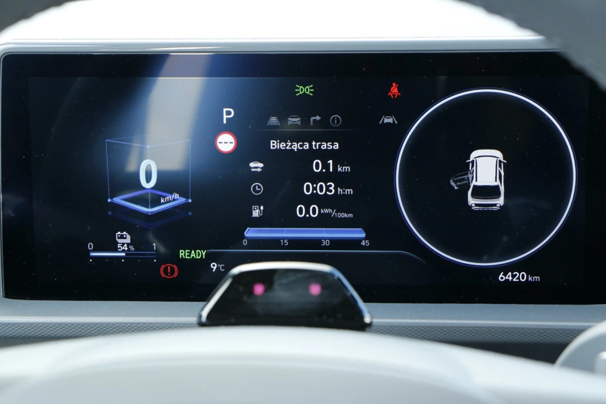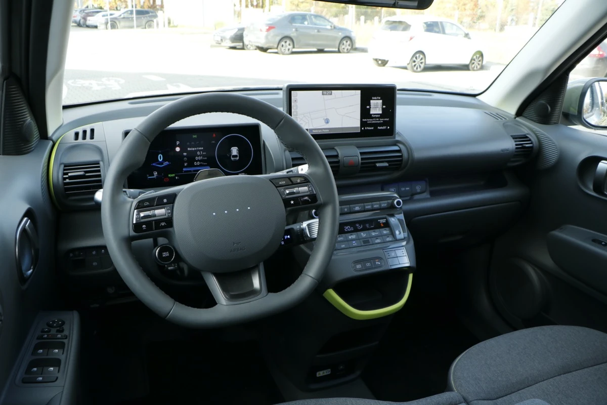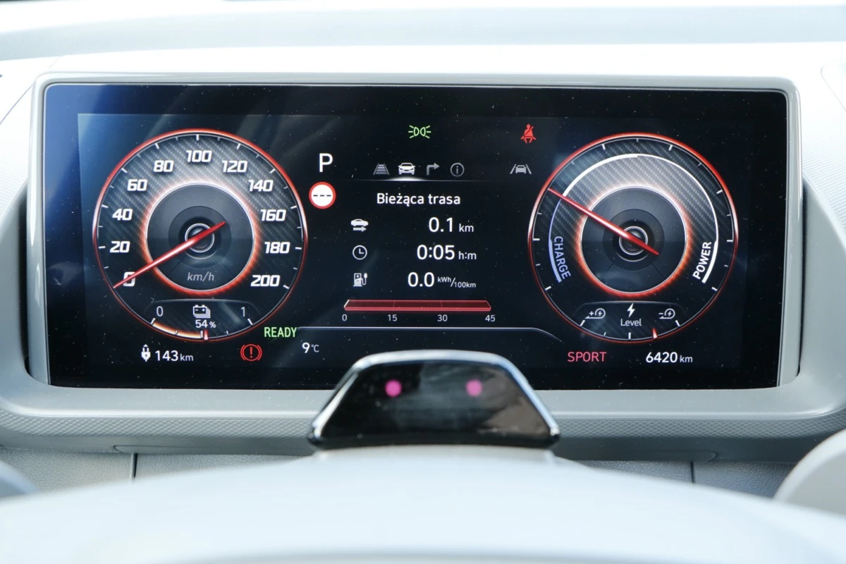 Bardzo mocnym punktem przemawiającym za Insterem jest zużycie energii. Mimo panujących chłodów i korzystania z ogrzewania w postaci pompy ciepła, bez problemu schodziłem do 15 kWh na 100 km w jeździe miejskiej. A nawet mniej – zdarzały się wyniki 14,2 czy 13,7 po kilkunastu kilometrach jazdy. Dodam, że jeździłem normalnie, bez prób radykalnej ekojazdy, jednocześnie eksperymentując z różnymi poziomami rekuperacji. Jej siłę reguluje się łopatkami za kierownicą. Można też włączyć tryb automatyczny przez przytrzymanie prawej łopatki i wtedy Inster staje się „inteligentny”. Jeśli nie wykrywa przeszkód – toczy się swobodnie, jeśli widzi auto przed nami – sam zahamuje. Działa to bardzo dobrze, do tego stopnia że zacząłem ufać temu systemowi i momentami w ogóle nie używałem hamulca. Rozleniwiające doświadczenie.