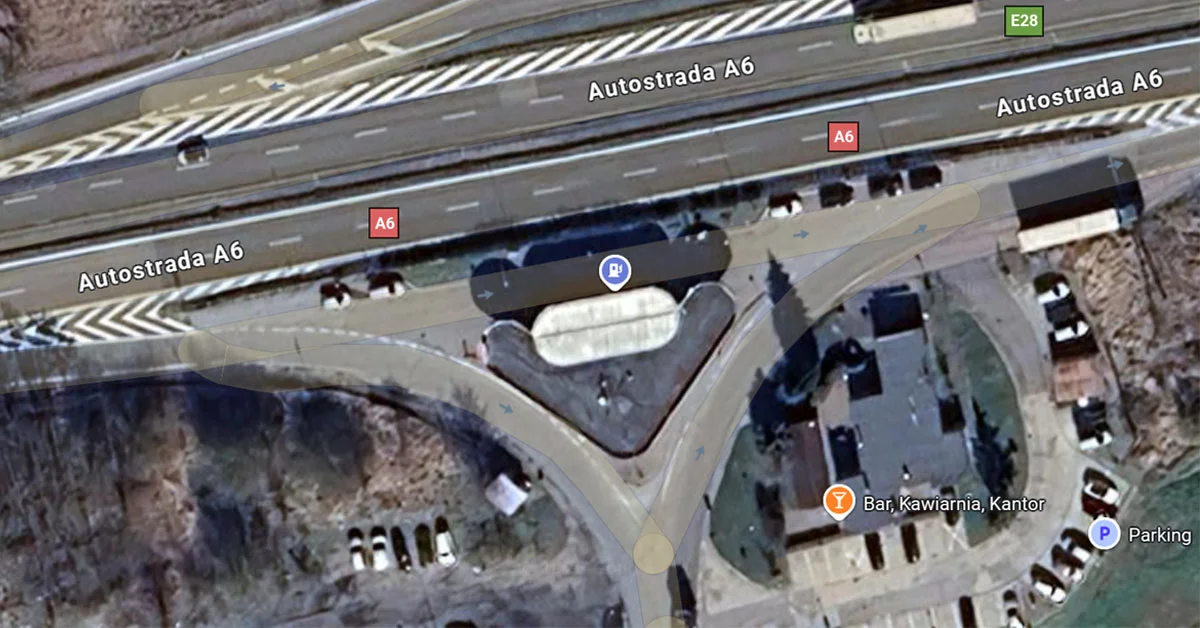 Czym innym zaś jest stacja w Kołbaskowie, znajdująca się na południowej jezdni autostrady A6. Nie ma statusu zabytku, więc nikt się nad nią nie rozczulał, a po prostu modernizował zgodnie z wiatrem historii. Zmiany dotknęły m.in. charakterystycznego zadaszenia w kształcie bumerangu, które ze względów praktycznych zostało poszerzone ponad dystrybutory stojące od frontu i stało się bardziej, że tak powiem, trójkątne. Tym sposobem, z całego kwartetu stacja w Kołbaskowie jest na swój sposób najbardziej autentyczna, bo naturalnie podporządkowana aktualnej funkcji.