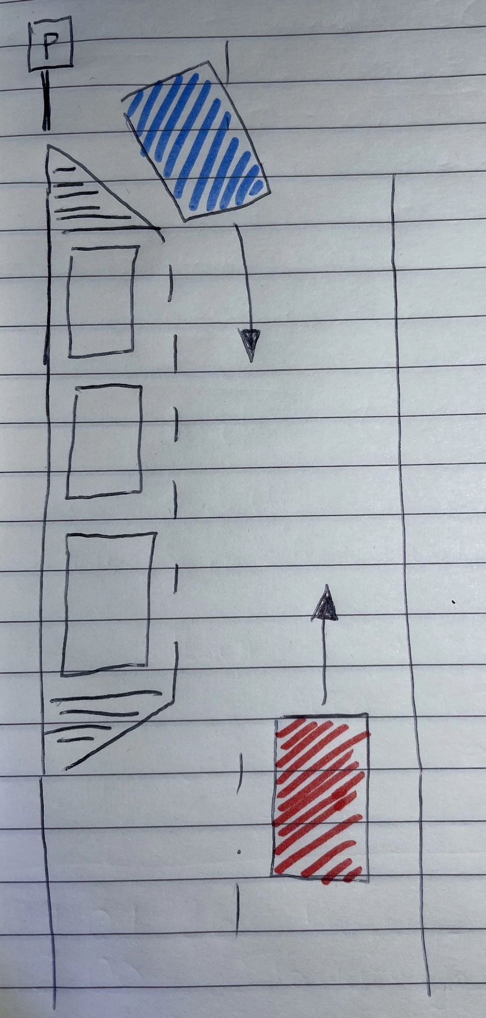 Na filmie widać dwie kierujące, które wjeżdżają na zwężony odcinek jezdni. Problem polega na tym, że on nie jest zwężony, bo ktoś sobie stanął, tylko tam wyznaczono miejsca postojowe. Czyli zwężenie jest permanentne, nie występuje tu żadne omijanie przeszkody. To jest realna szerokość jezdni w tym miejscu, sytuacja analogiczna do jazdy bardzo wąską drogą wiejską – jakoś trzeba się minąć. Miejsca postojowe nie należą już teoretycznie do tej jezdni, więc na tym odcinku mamy szerokość na jedno auto. Nie postawiono znaku D-5 i B-31 regulującego pierwszeństwo na zwężonym odcinku, więc trzeba odwołać się do zdrowego rozsądku. Przepisy też nie regulują precyzyjnie tej kwestii.