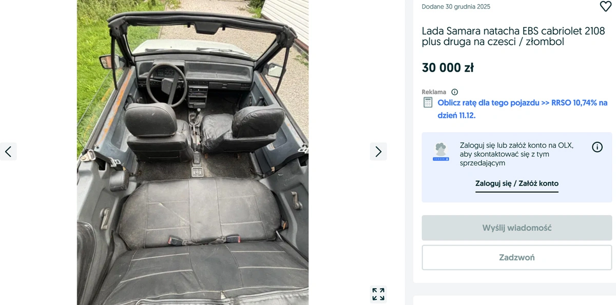 Z gorszych wiadomości, treść ogłoszenia okraszona jest zdaniem “samochód do renowacji”. Świadczy to o tym, że nie jest to projekt “na już”, typu wsiadać, odpalać i jechać, lecz wymaga nieco pracy i inwestycji.