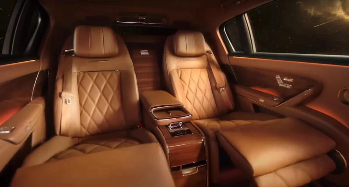 Wyposażenie można określić jednym słowem: tak. W S800 znajdziemy m.in. 76-calowy wyświetlacz HUD, chłodzone ładowarki bezprzewodowe, tylne fotele grawitacyjne z funkcją podgrzewania, klimatyzacji i masażu z dostępem do projektora dla pasażerów, oraz przyciemniania tylnych szyb na życzenie, wykonywane jednym ruchem ręki.