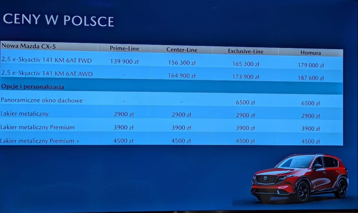 Co najlepsze - typowemu klientowi moc tej Mazdy zupełnie nie przeszkadza. Auta dopiero trafiają do salonów, a już 3000 klientów w ciemno wpłaciło zaliczki. Dodajmy, że w Polsce, bo u nas ten model ma najwyższą popularność ze wszystkich krajów europejskich. Dlaczego? Bo w świecie, w którym rządzą kolumny w Excelu, w którym wszystkie auta cierpią na te same bolączki i coraz mniej odróżniają się od siebie, Mazda postanowiła pójść pod prąd. Co ciekawe - ten 2,5-litrowy silnik spełnia nie tylko obecne normy emisji spalin, ale jest również gotowy na Euro 7. Trochę magia, a trochę dowód na to, że to nie w ekologii leży problem z pojemnością, tylko w zdolnościach inżynierów. Zapewne ktoś mi powie, że takiego SUV-a nie kupuje się kierując się dynamiką, a ostatnia Mazda, którą kupowała się dla osiągów nosiła oznaczenie RX-8, a może nawet RX-7, ale i tak nie zamierzam zmieniać zdania - 141 KM to zbyt mało do tego samochodu.
