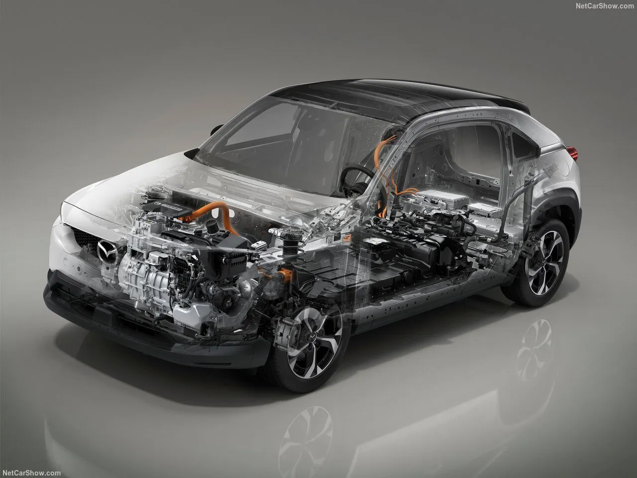 Nie zdecydowano się na zastosowanie większego pakietu akumulatorów. Postawiono na silnik spalinowy. Bardzo ochoczo skorzystano z niezwykle lubianego w Maździe silnika Wankla, który trafił pod maskę. Akumulatory i silnik elektryczny zostały. Auto stało się hybrydą z możliwością ładowania z zewnętrznego źródła prądu.