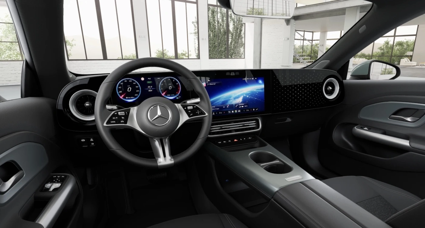 Wyższe pakiety wyposażenia (6532 zł) dorzucą do tego m.in. oświetlenie nastrojowe, bezprzewodową ładowarkę do telefonu z przodu czy... tylny podłokietnik. Jeśli sięgniemy jeszcze wyżej (14 360 zł) dostaniemy bonusowo pakiet pamięci dla foteli, MBUX Superscreen, podświetlane listwy progowe i dwustrefową klimatyzację. Tak, w niższych wariantach klimatyzacja ma jedną strefę.