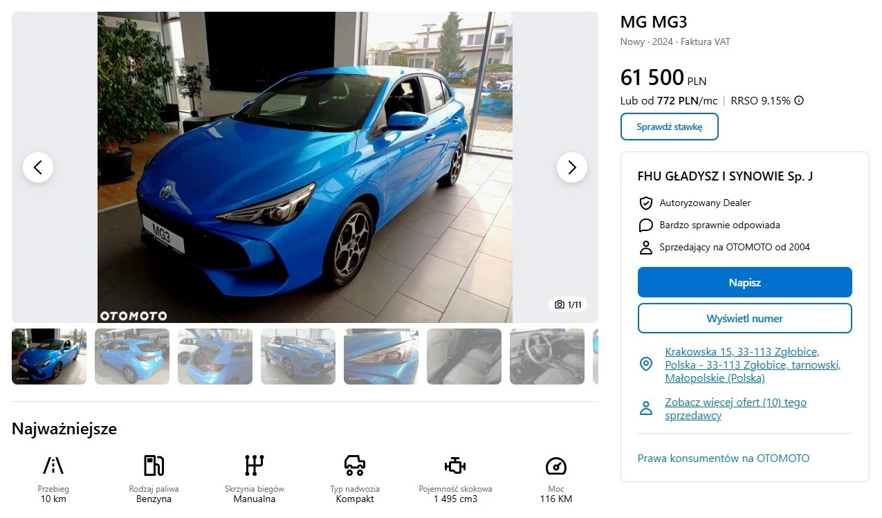 Jeśli szukacie nowego i taniego samochodu do miasta, nie mogliście trafić lepiej. W województwie małopolskim czeka na was MG3 za 61 500 zł.