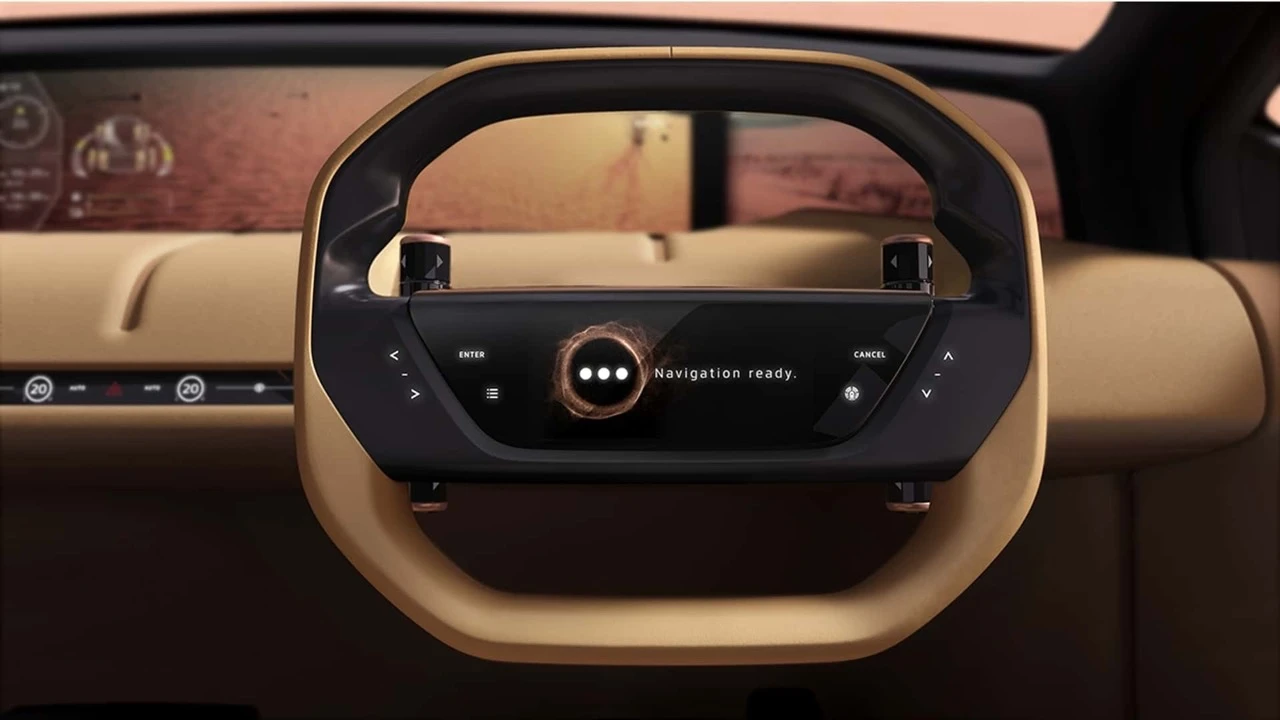 Kabina oferuje trzy rzędy siedzeń w układzie 2+2+2, a przednie fotele można obracać o 180 stopni. Trzy ekrany na kokpicie to nie wszystko: kolejny wyświetlacz umieszczono w sześciokątnym kole kierownicy. Panel klimatyzacji przeniesiono na smukły, dotykowy pasek, a pośrodku umieszczono klasyczne, fizyczne pokrętło do wyboru trybów jazdy.