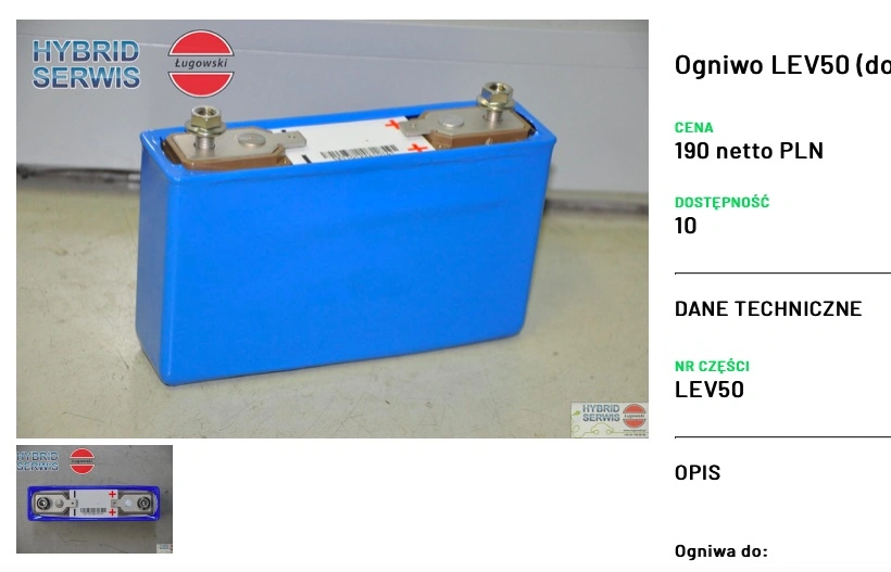 Auto ma uszkodzone akumulatory i jest w stanie przejechać do 20 km, pod warunkiem utrzymywania niskiej prędkości miejskiej. Po „odstaniu” czyli wyrównaniu się napięć w ogniwach można pokonać kolejne 20 km. Oznacza to, że pojazd jest raczej bezużyteczny do innego celu niż wycieczka do sklepu i z powrotem po wsi. Z diagnostyki wynika, że do wymiany kwalifikuje się 18 z 80 ogniw. A że jedno ogniwo typu LEV50 kosztuje 190 zł, to same części wyjdą (minimum) 3420 zł, plus inne elementy i robocizna – można przyjąć, że za ok. 5000 zł da się ten samochód przywrócić do sprawności. Mowa o cenie netto...