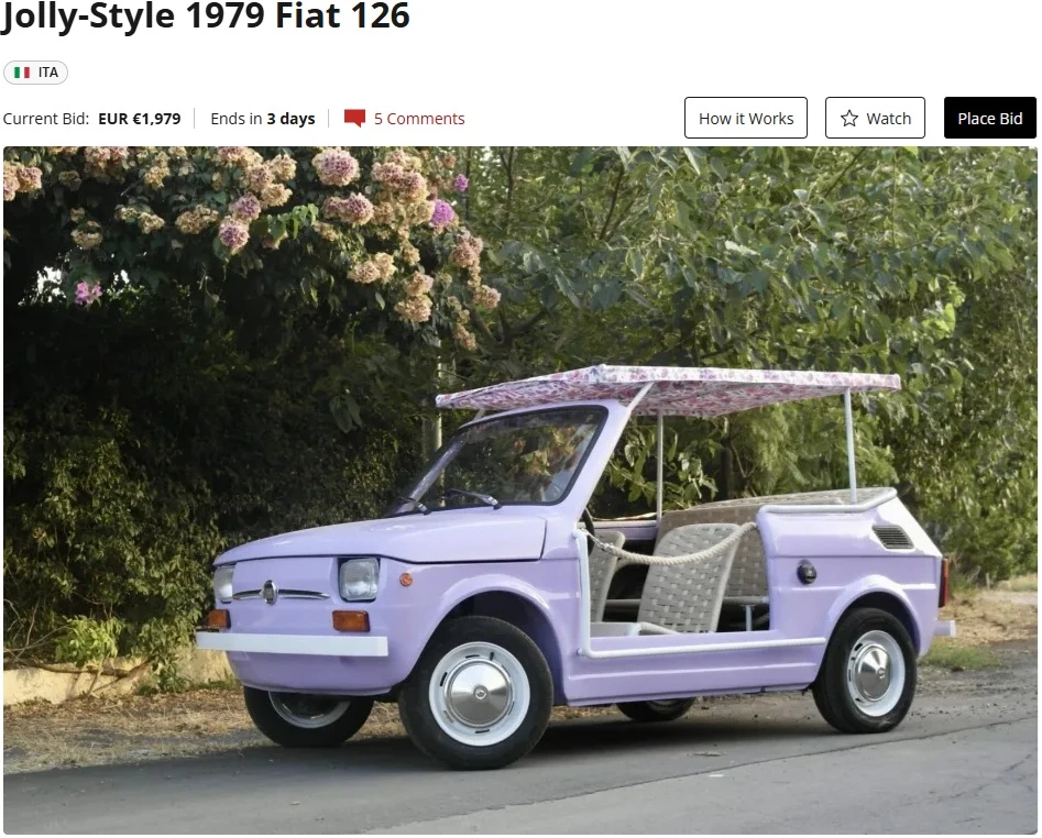Na portalu Bring a Trailer wystawiono Fiata 126 Jolly. Nie jest to jednak modyfikacja oryginalna, a replika. Chociaż tak właściwie nie można nazwać go repliką, bo Fiat 126 Jolly nigdy nie istniał - a przynajmniej wtedy, kiedy produkowano Fiata 126.