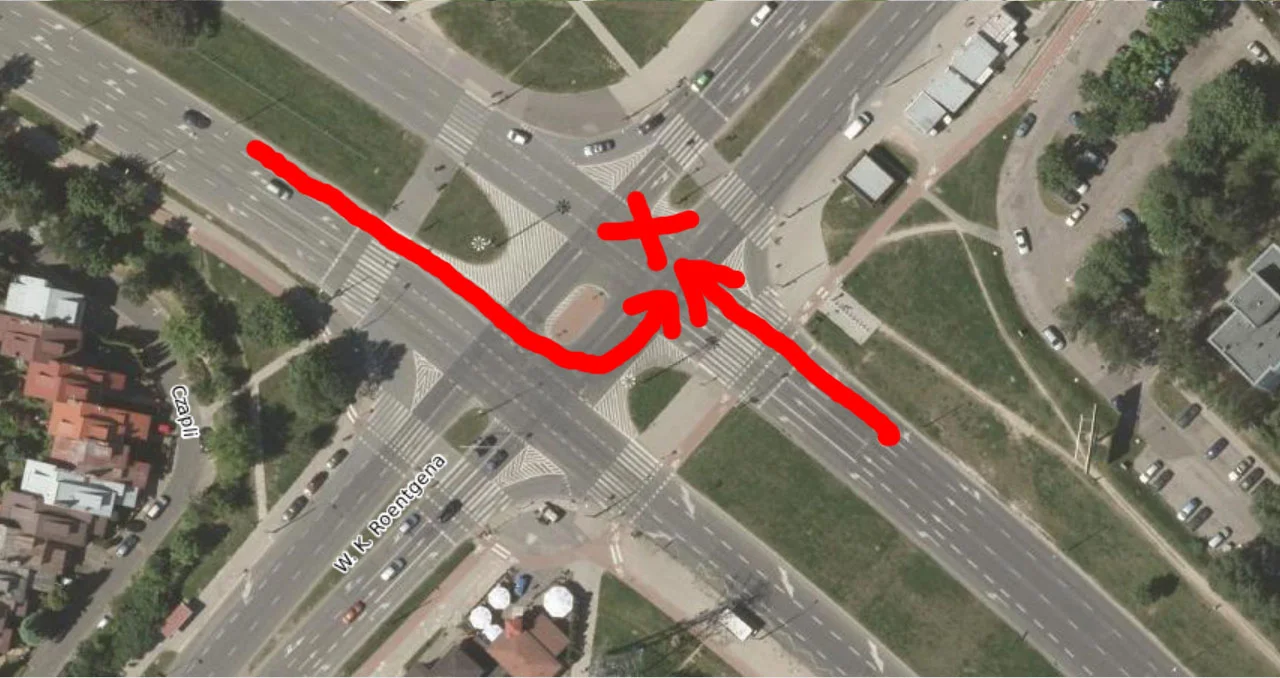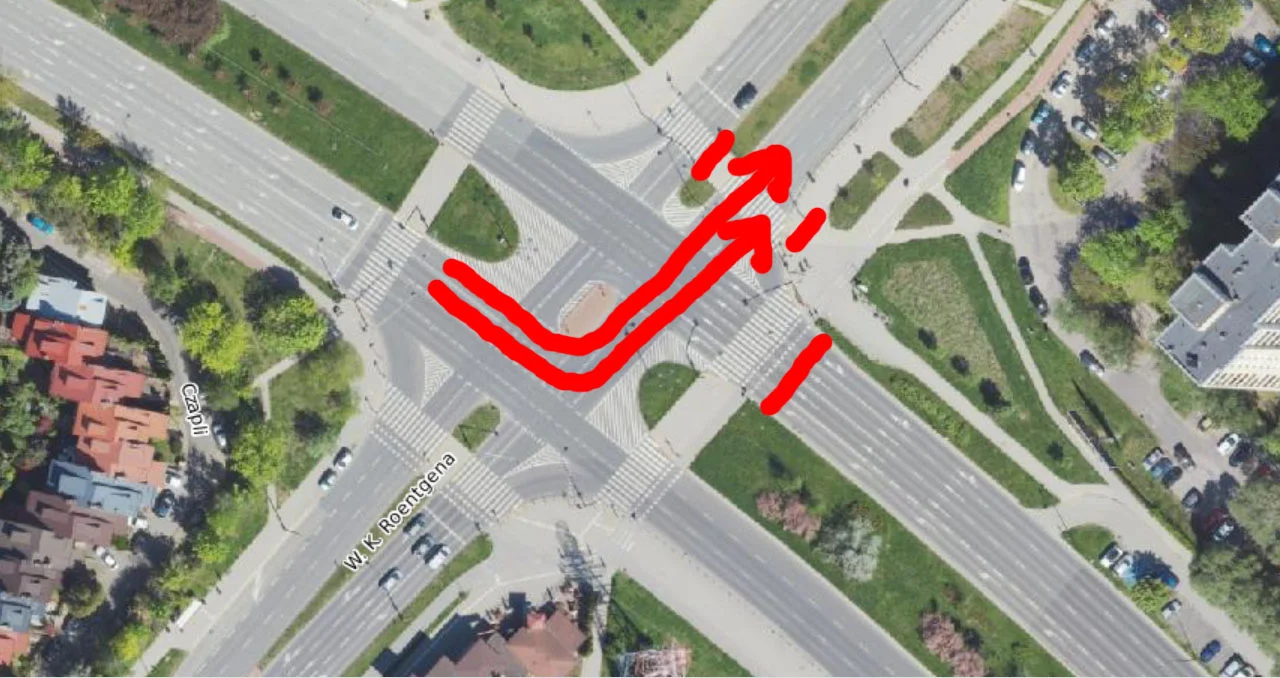 Problematyczny w tej historii jest skręt w lewo z ulicy Pileckiego w ulicę Ciszewskiego