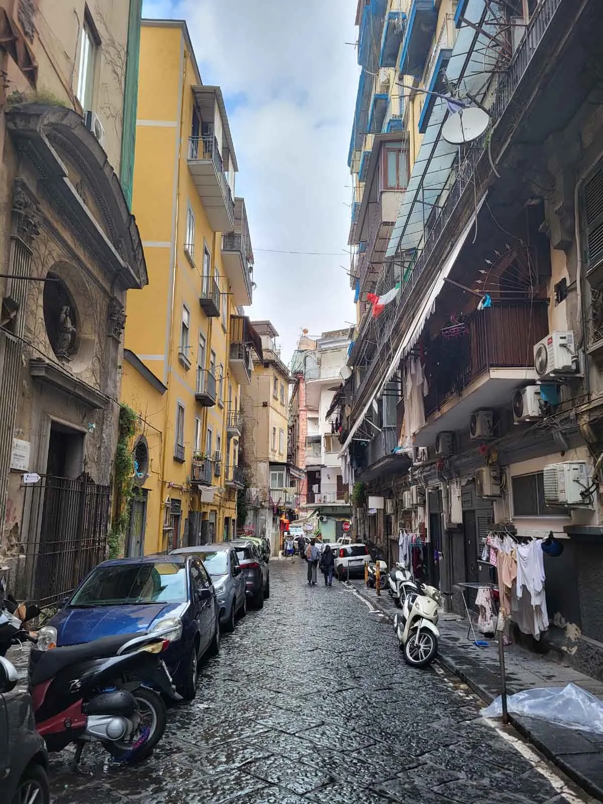 Neapol to idealny przykład, jak wygląda prawdziwe dzielenie się wspólną przestrzenią. Wspominałem wcześniej, że samochody parkują na chodnikach bez żenady, ale na tej samej zasadzie piesi chodzą po całej ulicy i to niejednokrotnie wprost pod jadące na zielonym samochody.