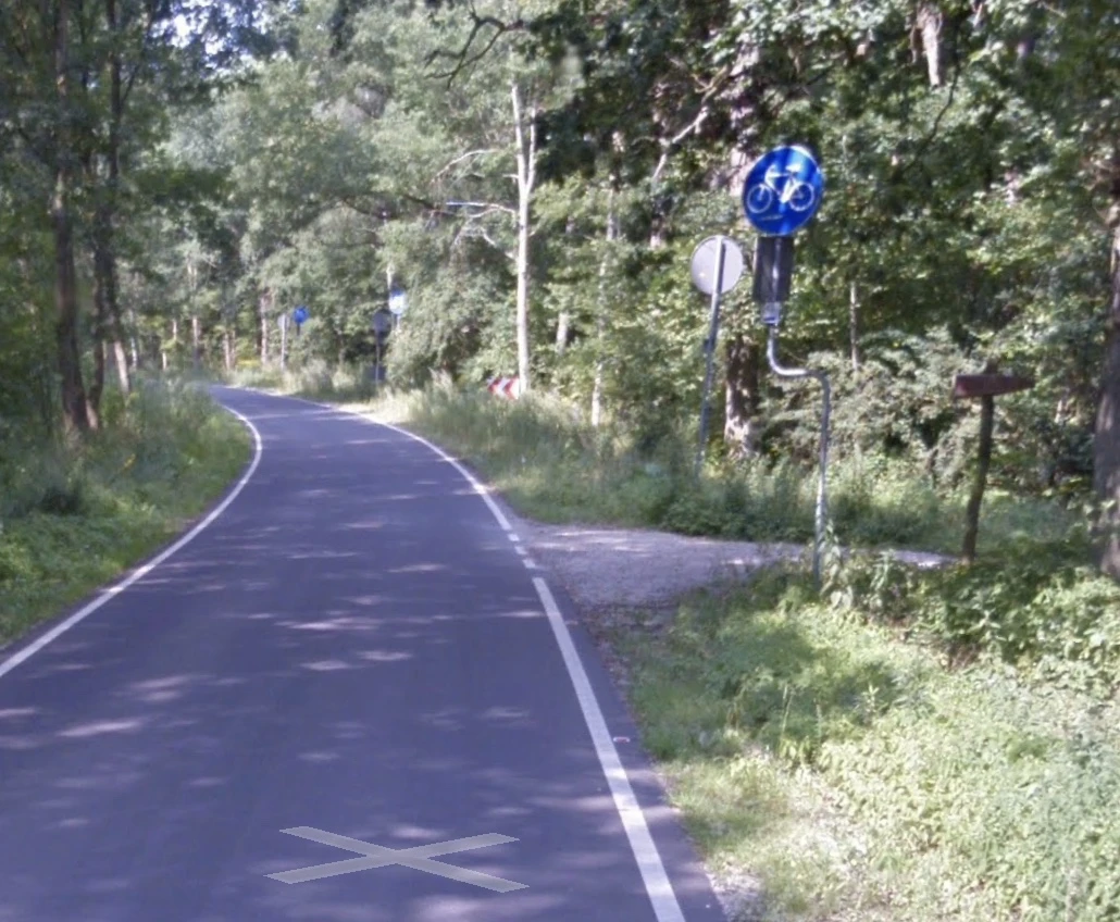 Otóż żadna z tych odpowiedzi nie jest prawidłowa. Tej drogi nigdy tutaj nie było, więc nie mogła zarosnąć. Zdjęcie z Map Google pochodzi natomiast z 2012 r. (droga jest mniej więcej z tego okresu) i do dzisiaj ten stan niespecjalnie się zmienił. Zresztą lokalne władze przyznają, że nie ma na razie żadnych planów wykonania tej drogi rowerowej. Może kiedyś, może jak będą pieniądze, na razie ta droga jest zupełnie nieważna (z czym się zgadzam w 100 proc., ale o tym za chwilę).