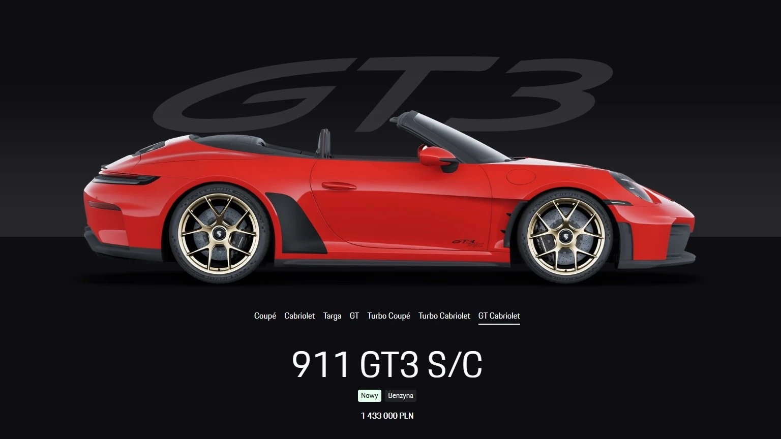 Bazowe Porsche 911 GT3 S/C, czyli takie bez dodatkowego wyposażenia, kosztuje 1 433 000 zł. To oznacza, że jest obecnie najdroższym modelem niemieckiego producenta bez ograniczonego nakładu produkcji. Za jego równowartość można by kupić dwie nowe 911 Carrery za 681 000 zł, a w kieszeni i tak zostanie wam jeszcze 71 000 zł.