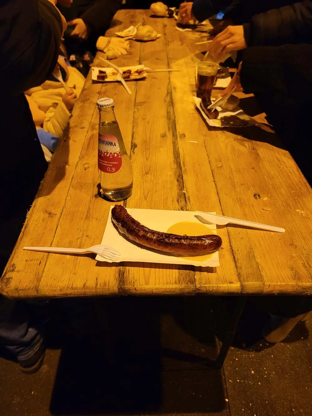 Kiełbasa popita oranżadą ze szklanej butelki była doskonałym ukoronowaniem udanie spędzonego dnia i pozytywnym doładowaniem przez 3-godzinnym powrotem gratem do Warszawy. Zarówno w kolejce, jak i przy wspólnym stole wystawionym obok Nyski panuje towarzyska atmosfera, tak że ludzie widzący się po raz pierwszy w życiu nawiązują znajomości, jakby byli razem na koncercie rockowej kapeli. Sam spędziłem w ten sposób czas z trzema całkowicie przypadkowymi osobami.