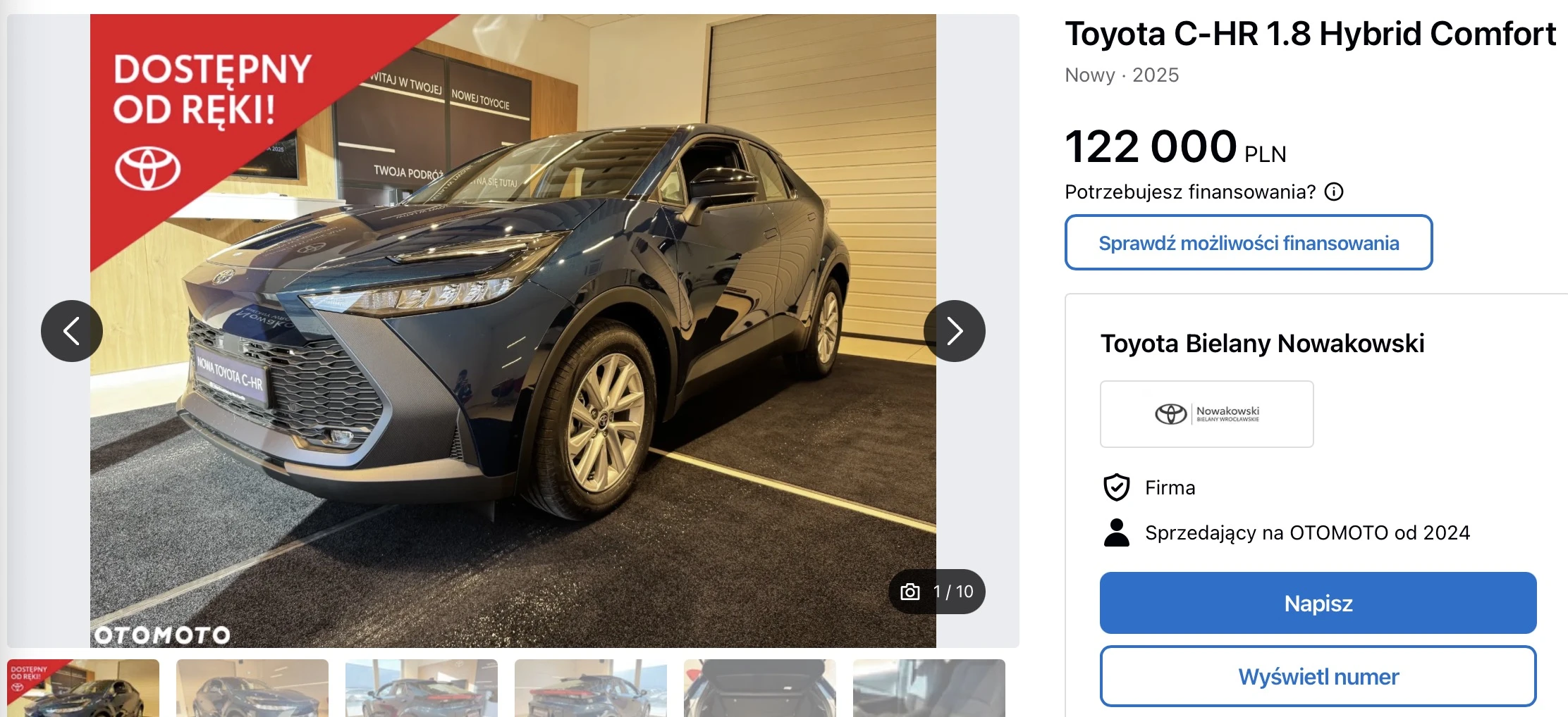 Wersja wyposażenia możliwie najniższa, ale argumenty są trzy. Po pierwsze - to oczywiście hybrydowa Toyota, więc spora część naszej redakcji już się zbiera, żeby zakrzyknąć "niezawodna". Po drugie - to faktycznie rozsądna cena. Może i nie absolutnie najniższa cena z wyprzedaży, ale na tle narzekań na ceny początkowe tej generacji - jest dobrze.