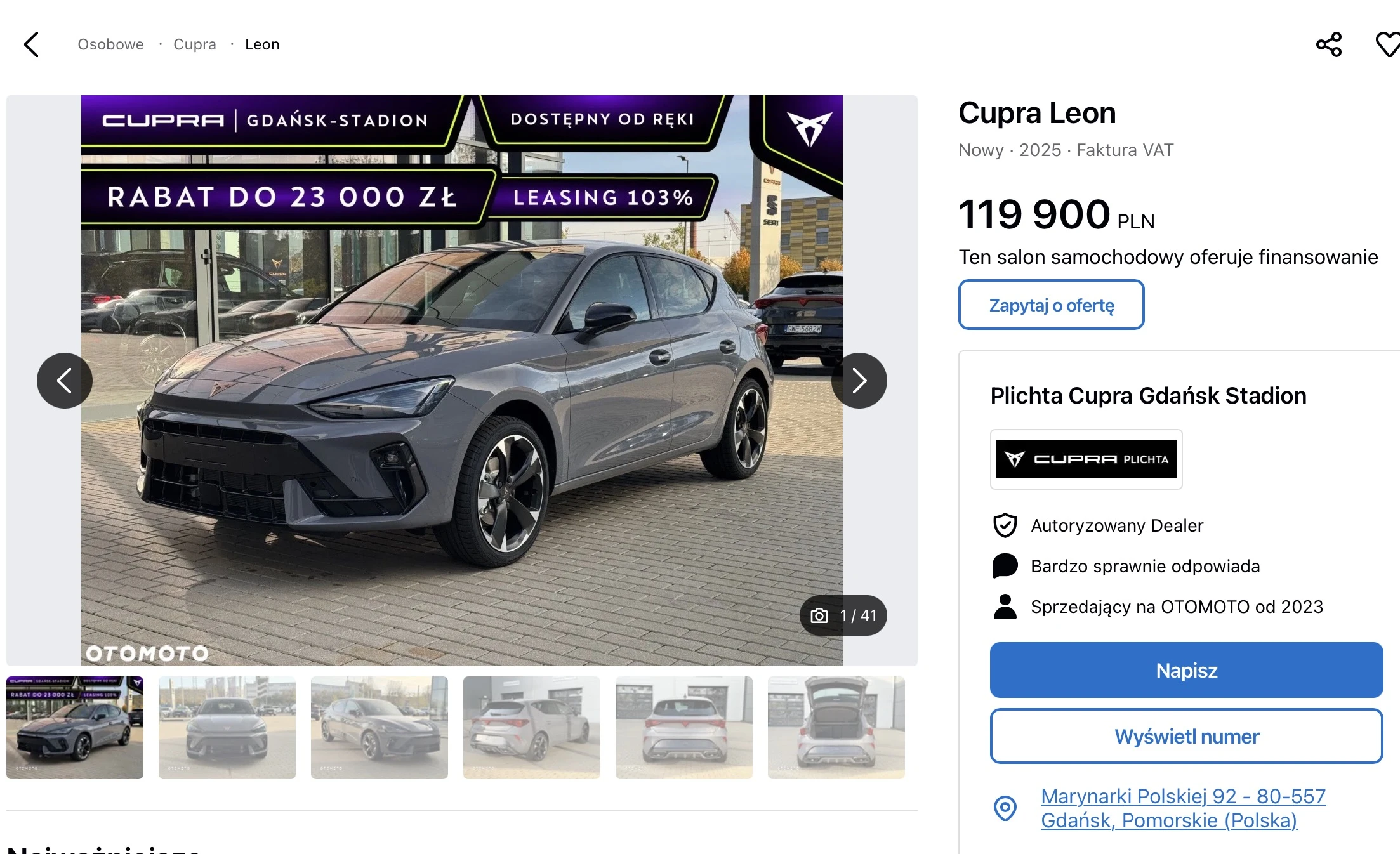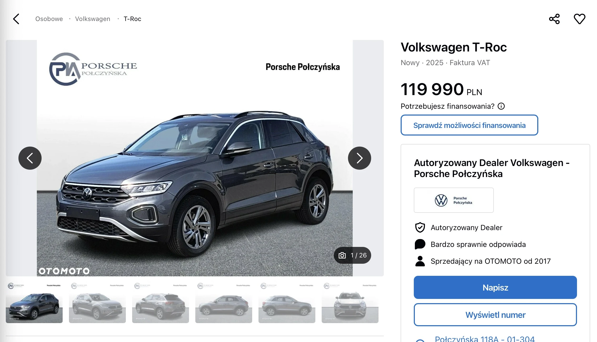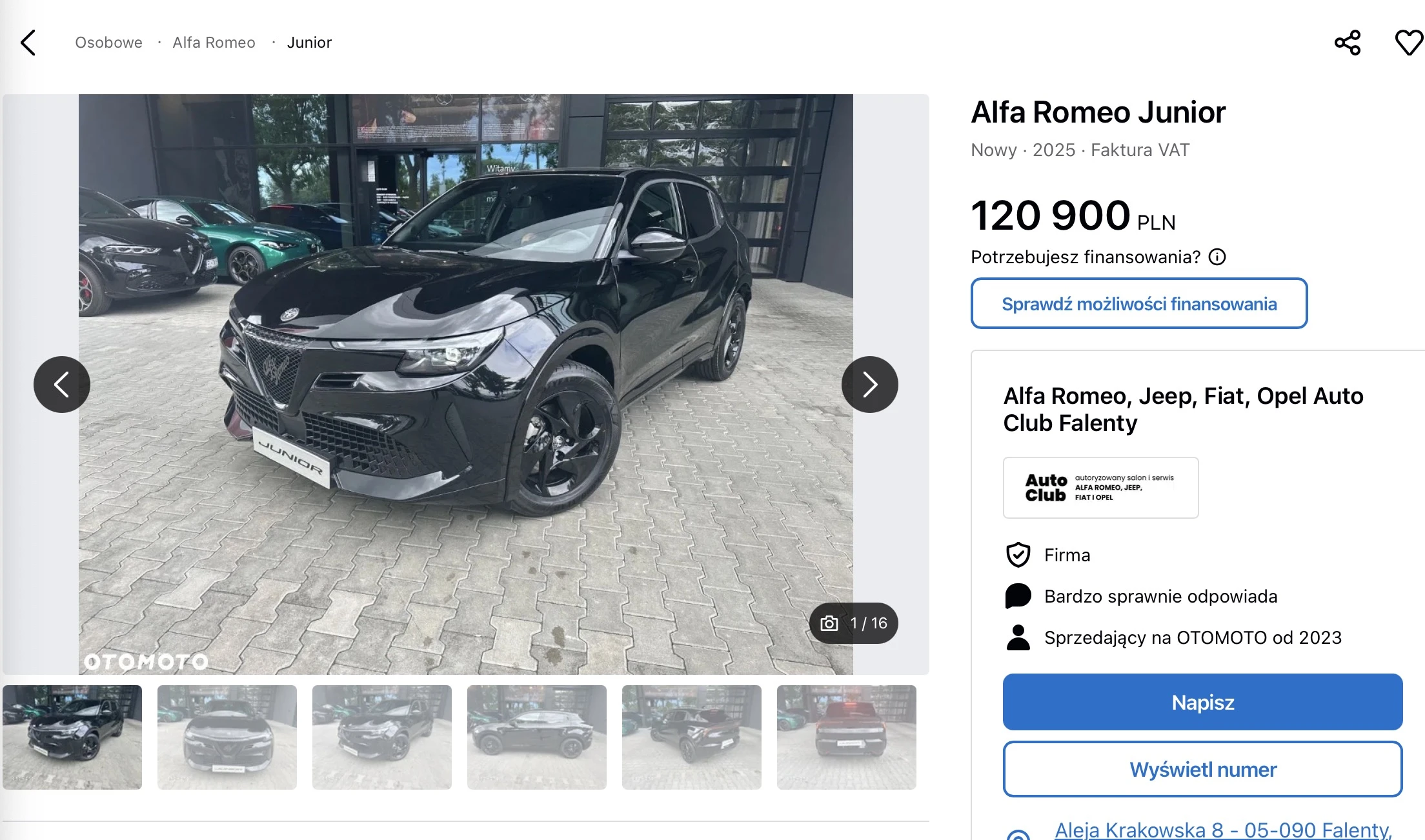 Nie jest to zresztą jeden jedyny taki egzemplarz - m.in. na Otomoto jest pełno sztuk do okolic 125 tys. zł, więc jeśli rozważamy zakup, niekoniecznie trzeba się jakoś strasznie spieszyć. Tym bardziej, że zabawny fakt jest taki, że niektórzy za mniej więcej 135 tys. zł będą nam próbowali sprzedać... Alfę Romeo Tonale.