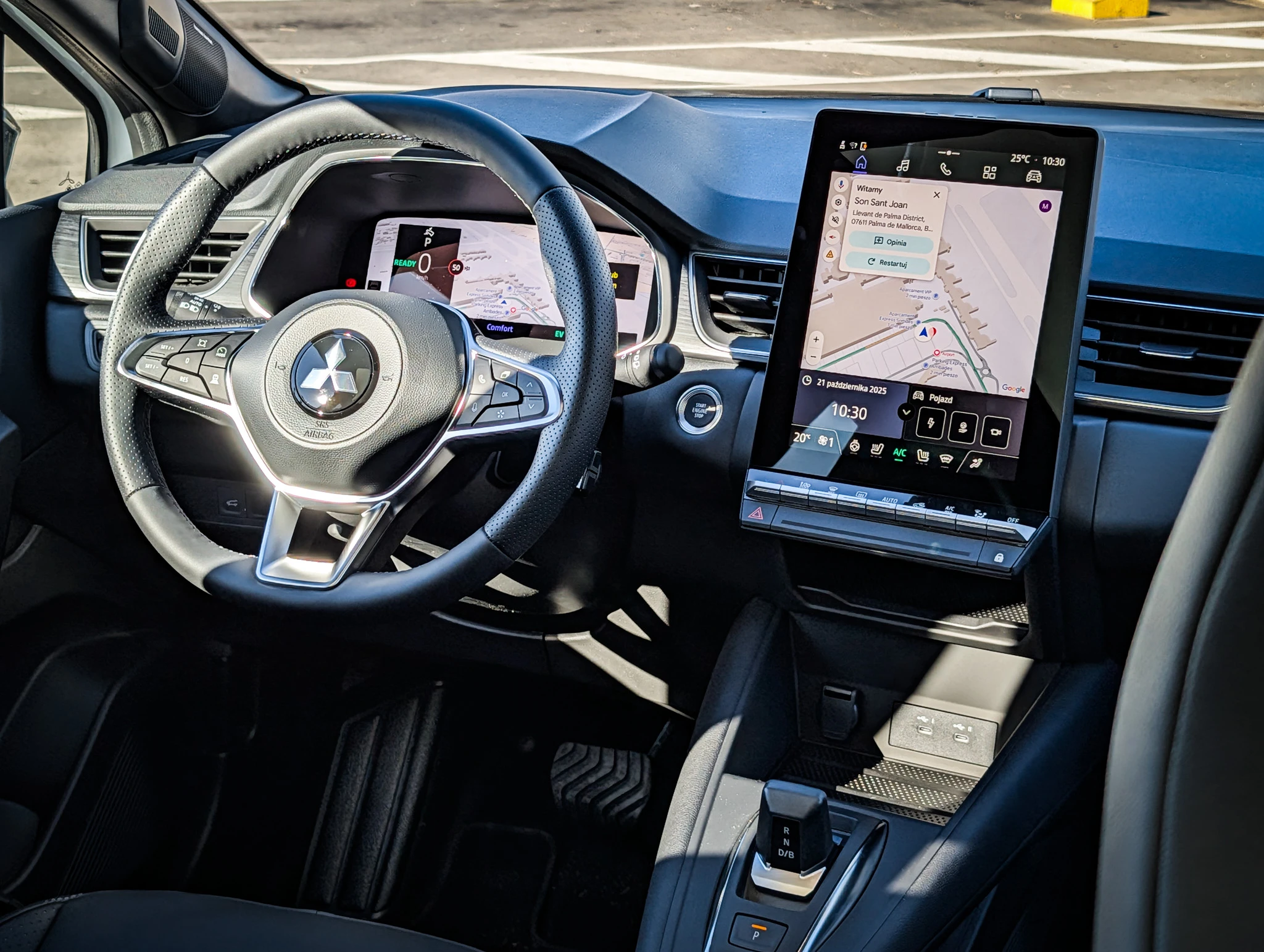 Wyświetlacz kierowcy ma 10 cali i potrafi między zegarami wyświetlacz mapę Google i uwaga - obsługuje również Waze, co niektórych może zaskoczyć. Nowy Mitsubishi Grandis jest napakowany systemami wsparcia kierowcy, więc będziecie zadowoleni niezależnie czy manewrujecie w mieście czy jeździcie po trasie. Wszystko działa bardzo dobrze. Oczywiście są pewne niedoskonałości, jak np. słaba jakość obrazu z kamery cofania, ale to wina Renault.