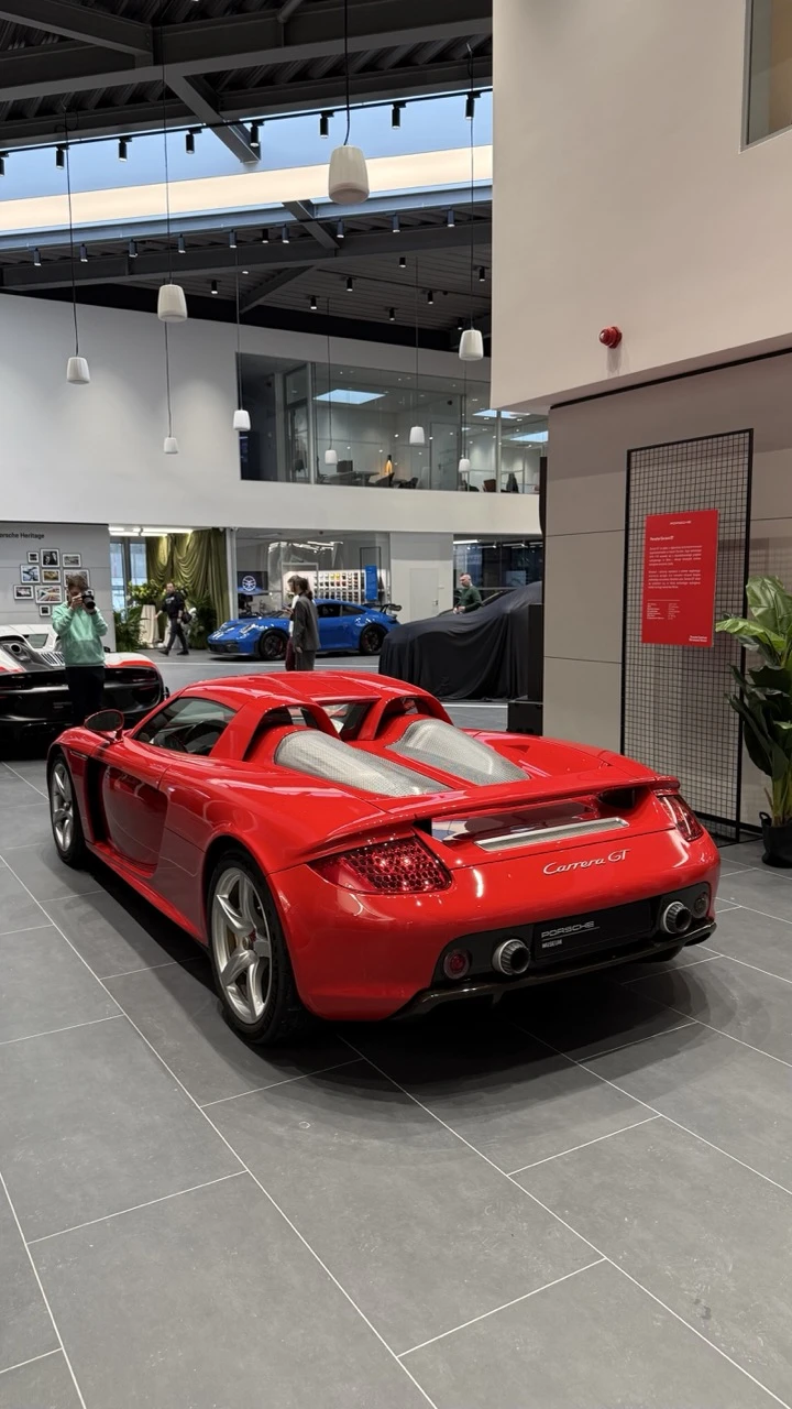 Pozwólcie, że zacznę od zdjęcia modelu, na widok którego opadła mi dziś szczęka. Z całym szacunkiem do elektrycznego Cayenne, to akurat nie był ten wóz. Carrerę GT widziałem już kiedyś w muzeum Porsche i ochroniarz musiał wynosić mnie siłą sprzed eksponatu. Krzyczał, że już zamknięte i że muszę sobie iść, ale niespecjalnie go słuchałem. Teraz eksponat z muzeum przyjechał do Warszawy. Nie był to dokładnie ten wóz, do którego kiedyś się modliłem, tylko… fajniejszy, bo taki, który jeździ. Zrobił 54 tysiące kilometrów, czyli jak na klasyka z silnikiem V10, naprawdę dużo. I dobrze.