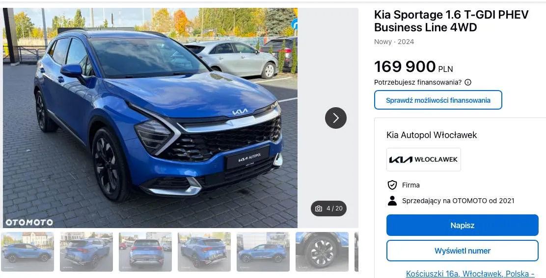 Kia Sportage PHEV za 169 900 zł. Tak, wiem – drugie auto z tej samego koncernu, ale trudno przeoczyć taką okazję. Cennik wyprzedażowy na stronie producenta twierdzi, że wszystkie egzemplarze z 2024 r. są wyprzedane. Jak widać, nie wszystkie. Model z roku 2025 w tej wersji wyposażenia i z hybrydą plug-in kosztuje 214 900 zł. Rabat wynosi więc 21 procent, i to jest zapewne lepszy plan na zrealizowanie marzenia o plug-inie niż BYD. Może te 64 km w trybie czysto elektrycznym to nie jest rekord, ale spadek wartości będzie nieporównywalny.
