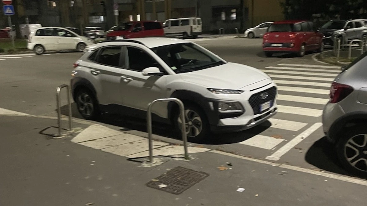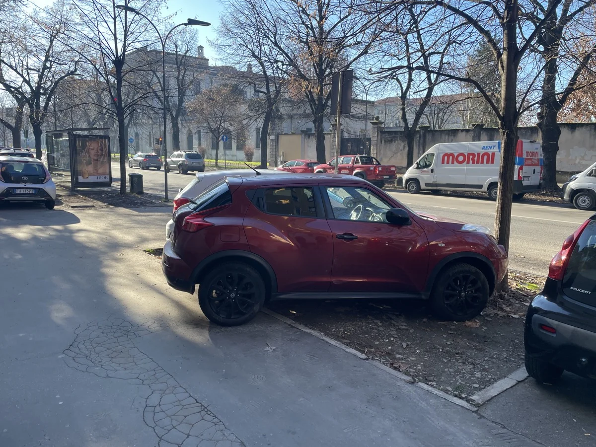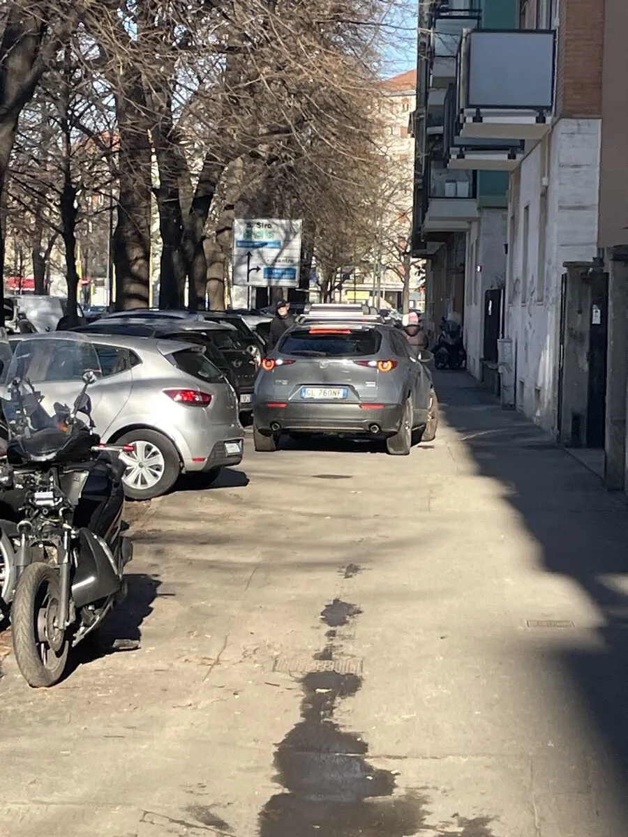 W Mediolanie jest sporo miejsc parkingowych, ale samochodów jest bardzo dużo. Stara część miasta, tzw. Area C, objęta opłatą za wjazd, nie oferuje wielu możliwości parkowania, a i tak trwa tam ciągły ruch aut prywatnych. Całe miasto to strefa czystego transportu o dosyć rygorystycznych kryteriach, a jednak w ruchu ulicznym regularnie widzi się graty w rodzaju Pandy I, Seicento itd. – tak jakby zupełnie się tą strefą nie przejmowano. Najmniej jednak przejmują się kwestiami parkowania. Niby są skomplikowane zasady, jak linie w różnych kolorach – żółte, niebieskie i białe, pozwalające na różny czas trwania parkowania i różnicujące ludzi na mieszkańców i niemieszkańców, ale mało kto tego przestrzega.