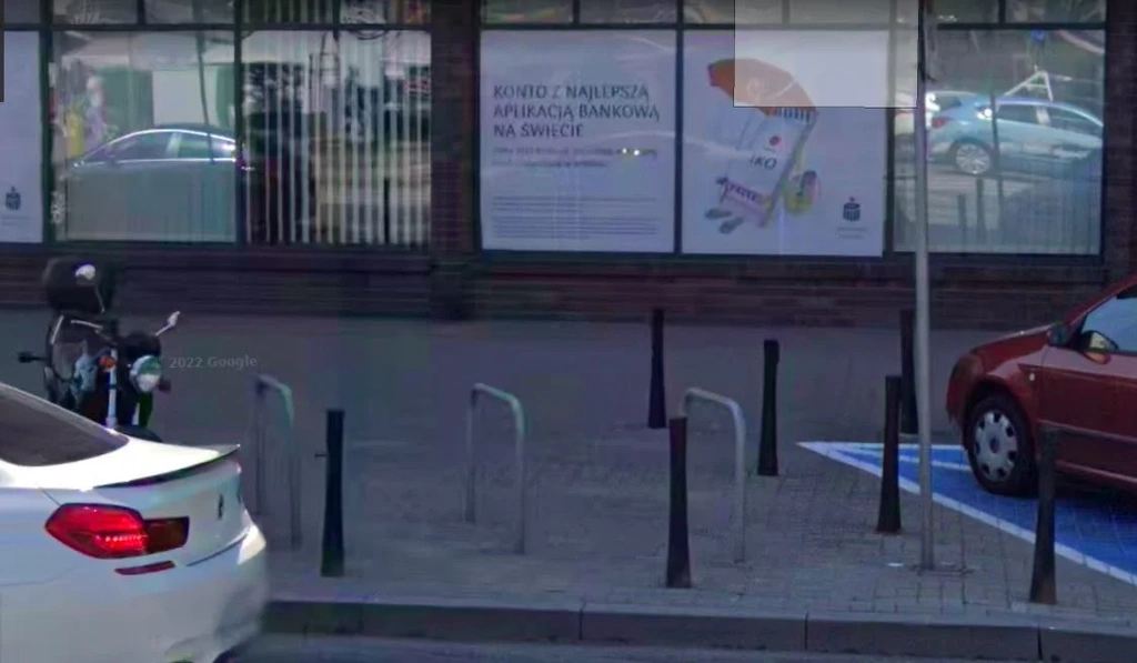 Nie ma natomiast żadnego przepisu, który zabraniałby stawiać motocykl przy metalowym stojaku, ponieważ te stojaki nie oznaczają parkingu rowerowego. Co więcej, w przepisach nie ma za bardzo możliwości oznaczenia parkingu jako „tylko dla rowerów”, chyba że obszar występowania stojaków zostałby obrysowany linią i postawiono by tam znaki „zakaz zatrzymywania” (B-36) + tabliczka „nie dotyczy rowerów”. Wtedy ewentualnie można byłoby uznać, że przy tych stojakach nie może stanąć nic innego niż rower. Natomiast jeśli mamy taką sytuację jak na zdjęciu poniżej...