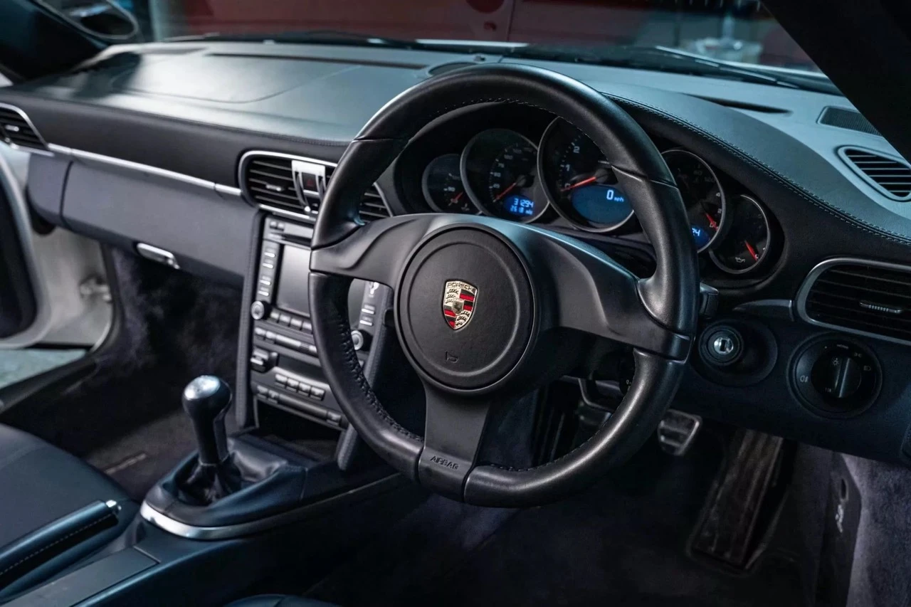 Auto trafiło na aukcję w Wielkiej Brytanii, bez ceny minimalnej. Ma niski przebieg, delikatnie przekraczający 50 tysięcy kilometrów. Z zewnątrz pokryto je lakierem Carrara White (to były początki mody na biel na drogich autach - pamiętam, że podobnym 997 jeździła w Polsce Doda), a w środku dziennikarz pozwolił sobie na odrobinę ekstrawagancji w postaci granatowej tapicerki Ocean Blue.