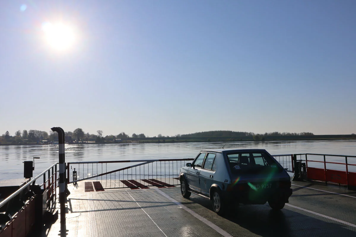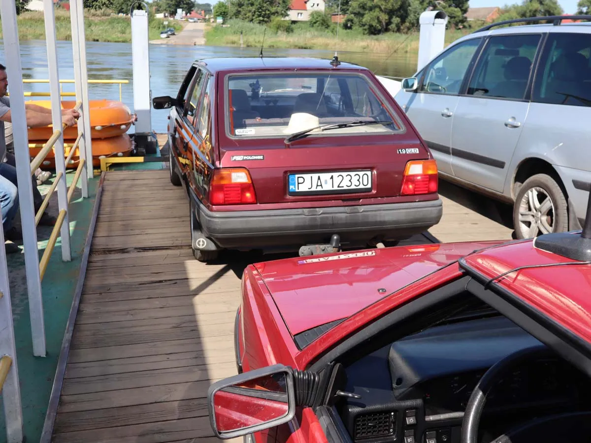 Jako typowy graciarz, również regularnie korzystałem z owej przeprawy, zarówno prywatnie, jak i służbowo. M.in. część kilku materiałów wykonananych dla Magazynu Classicauto powstała właśnie na pokładzie wspomnianego promu. Jednym z nich były trzy rzemieślnicze kabriolety ze wschodu kontynentu. Już wtedy towarzyszyły nam, to jest mi, fotografowi i kierowcom pojazdów kłopoty techniczne podczas przeprawy. Z uwagi na niski poziom wody w Wiśle prom musiał być równomiernie obciążony, aby nie osiąść na mieliźnie. Naruszyło to nieco naszą koncepcję ustawienia samochodów, ale te musiały zrobić przeciwwagę dla sterówki i wykluczone było zrobienie tego “po naszemu”.