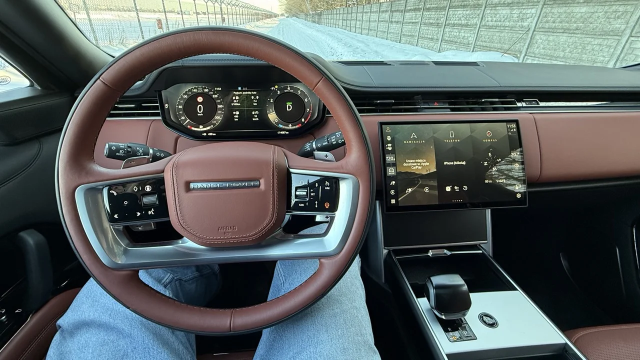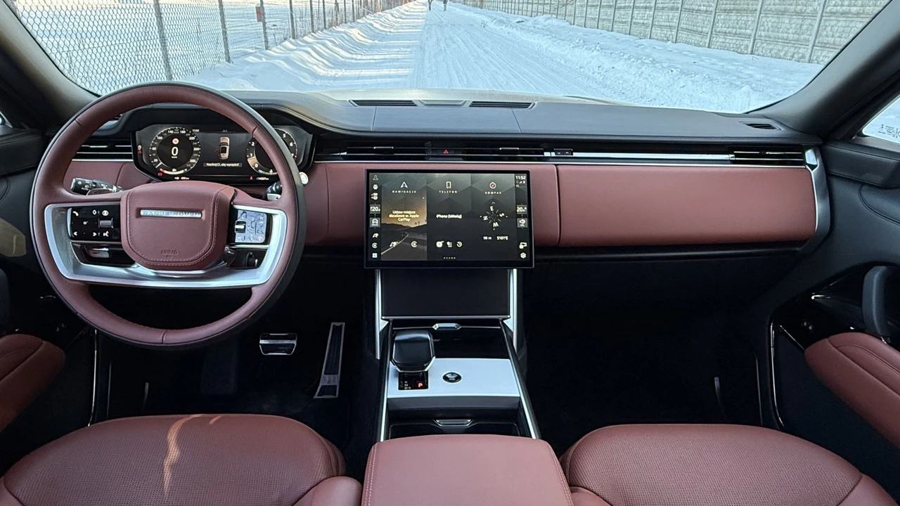 Wystarczy chwila na tym miejscu, by zrozumieć, czym Range Rover różni się od „zwykłych”, dużych SUV-ów w rodzaju BMW X7 (może mieć ten sam silnik) czy Mercedesa GLS. Niemieckie wozy wydają się przy Range’u malutkie. W brytyjskim aucie siedzi się o wiele wyżej. Nisko poprowadzona linia szyb pozwala dyskretnie zerkać na dachy aut stojących obok albo… patrzeć sobie w oczy z kierowcami ciężarówek. To sprawia, że naprawdę można się poczuć jak ktoś z wyższej (dosłownie) warstwy społecznej. Klimatu dodaje jeszcze wielka kierownica - trochę jak koło sterowe.