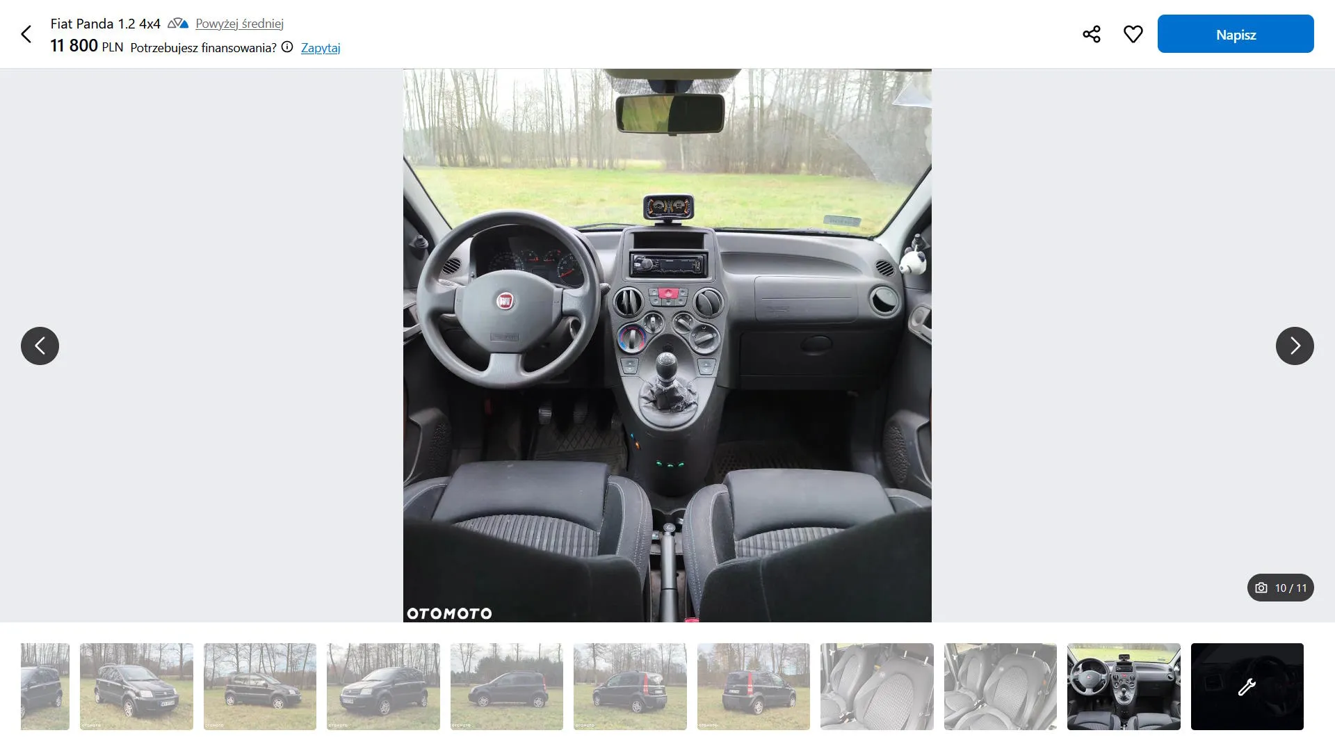 Fiat z 2005 r. za 11800 zł ma co prawda 275 tys. km przebiegu i - jak to Fiat - trochę ten przebieg po aucie widać, ale pod względem mechanicznym wydaje się być zadbany. Co ciekawe, ma też fotele wymienione na takie z Alfy Romeo, przez co, zgodnie ze słowami właściciela, jazda w trasie jest znacznie wygodniejsza. Warto odnotować, że choć napęd na tylne koła jest tu dołączany, to Panda 4x4 jest autem wyjątkowo sprawnym w złych warunkach drogowych czy np. w kopnym śniegu, nawet pomimo niewielkiej mocy silnika (60 KM).
