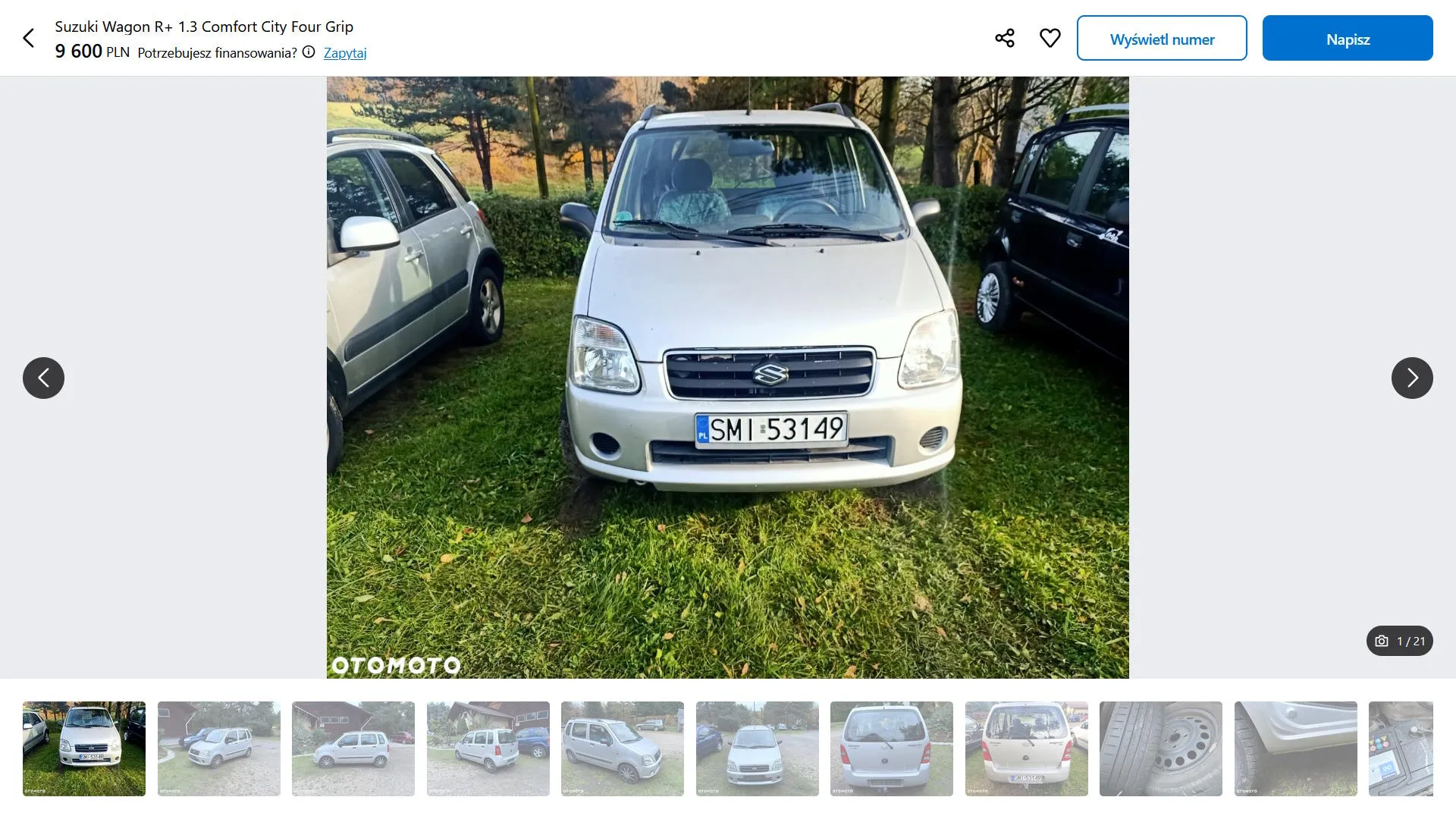 A to oznacza kolejne dorzucenie pliku banknotów - tylu, by uzbierać 9600 zł. Pierwsze, co rzuciło mi się w oczy, to Suzuki Wagon R+ 4x4, czyli auto, które wygląda jak Opel Agila, ale miało stosowane zupełnie inne silniki benzynowe, mogło mieć ten napęd (w przeciwieństwie do Opla), a ponadto... w rankingach bezawaryjności wypadało znacznie gorzej od Opla, co zawsze łączono z faktem, że Agila i Wagon R+ powstawały w innych fabrykach. Opel wyjeżdżał bowiem z bram zakładu w Gliwicach, a Suzuki produkowano na Węgrzech.
