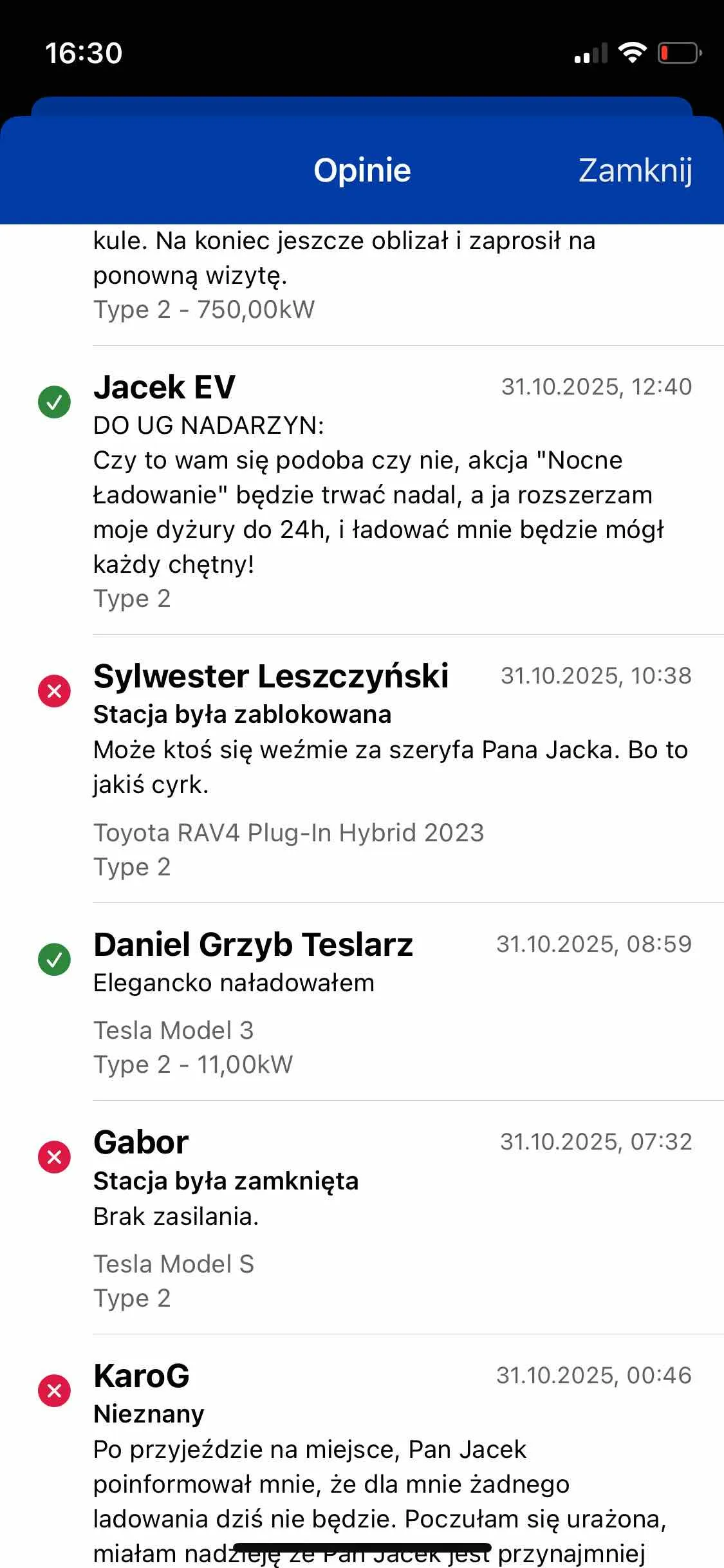 Nie słyszałem o darmowych stacjach benzynowych, więc dlaczego użytkownicy samochód elektrycznych mieliby jeździć zupełnie za darmo i jeszcze cieszyć się przywilejami typu jazda buspasem albo bezpłatne parkowanie? Cieszę się, że darmowa ładowarka w Nadarzynie została wyłączona, a patologiczna sytuacja „komitetu kolejkowego” – przecięta. Podobno ma zostać włączona ponownie po przebudowie – pewnie zamiast prądu przemiennego pojawi się stały, a zamiast darmowości – płatność. Wypadałoby też, żeby obsługa aplikacji PlugShare skasowała komentarze, jakie zamieszczono pod opisem ładowarki w Nadarzynie. Nie bardzo rozumiem w ogóle sens dodawania komentarzy do ładowarki, a w tym przypadku „śmieszni” użytkownicy internetu zarzucili ten punkt żenująco nieśmiesznymi opisami „ładowania” z podtekstem seksualnym.