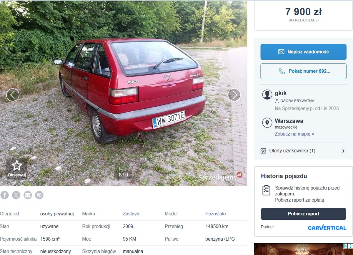 Jest to Yugo Florida - samochód u nas mało znany, a w tej wersji zupełnie niespotykany. "Tej wersji", czyli Florida In, ostatniej inkarnacji tuż przed zjazdem do zajezdni. Ogółem, model ten produkowano do 2008 roku, czyli wszystko wskazuje na to, że jest to ostatni rok modelowy Floridy. Łącznie trwało to przez… 20 lat. Nie liczcie jednak na to, że przez ten czas powstało kwadrylion egzemplarzy.